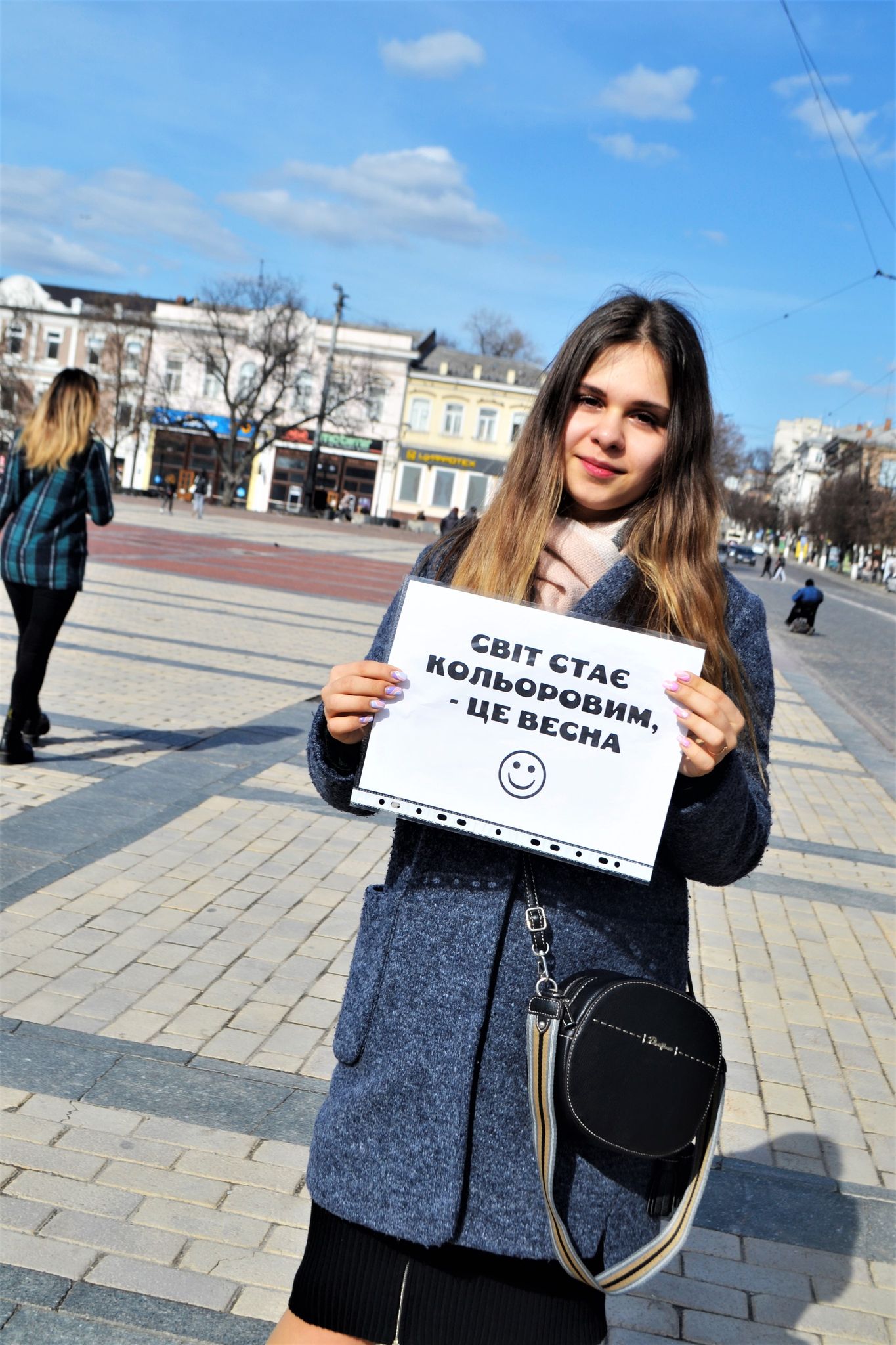“Ми просто зібралися сьогодні на площі вже вдруге. А перша подібна зустріч із містянами відбулася в лютому цього року, -інформує організатор заходу, який не назвав свого прізвища. – Люди посміхалися на наші запрошення і пригощалися гарячим запашним чаєм. А сьогодні ми даруємо людям, незалежно від їхнього віку, гарний весняний настрій, нагадуючи про початок весни – пору цвітіння чарівної української природи”.