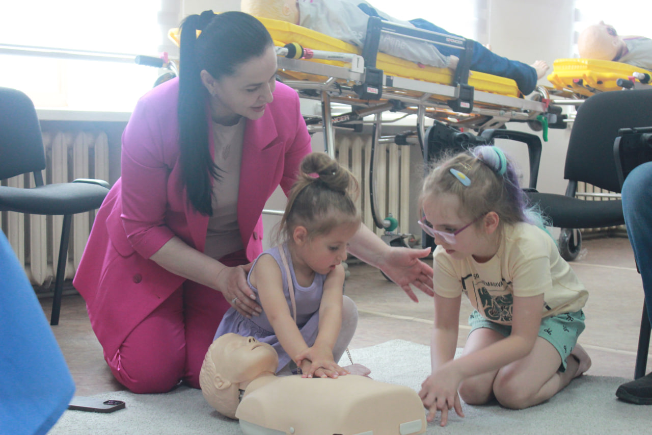 Під час тренінгу, діти вчилися надавати першу допомогу, робити масаж серця, використовувати дефібрилятор і турнікети та навіть виконували реанімаційні дії на тренувальних манекенах.