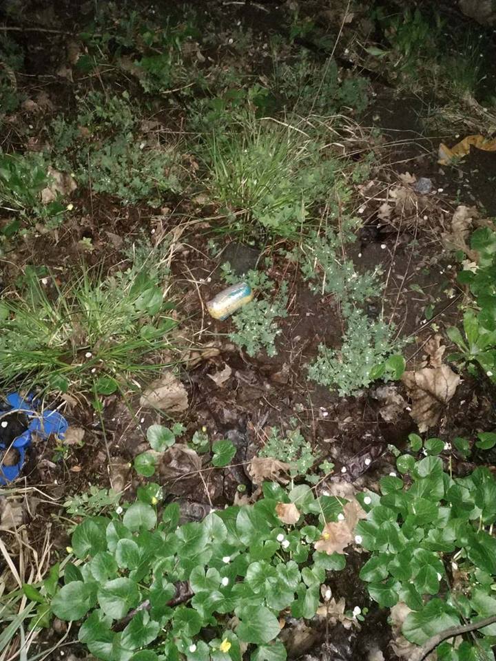 Про даний факт було повідомлено до чергової частини Кропивницького відділу поліції Головного управління Національної поліції України в Кіровоградській області. По прибуттю на місце пригоди слідчо-оперативної групи працівниками поліції було проведено огляд згортку, який лежав на землі, в результаті чого встановлено, що в згортку знаходилось вісім поліетиленових пакетиків з порошкоподібною речовиною білого кольору та один поліетиленовий пакет типу zip-lock з речовиною рослинного походження в подрібненому стані сіро-зеленого кольору з характерним запахом.