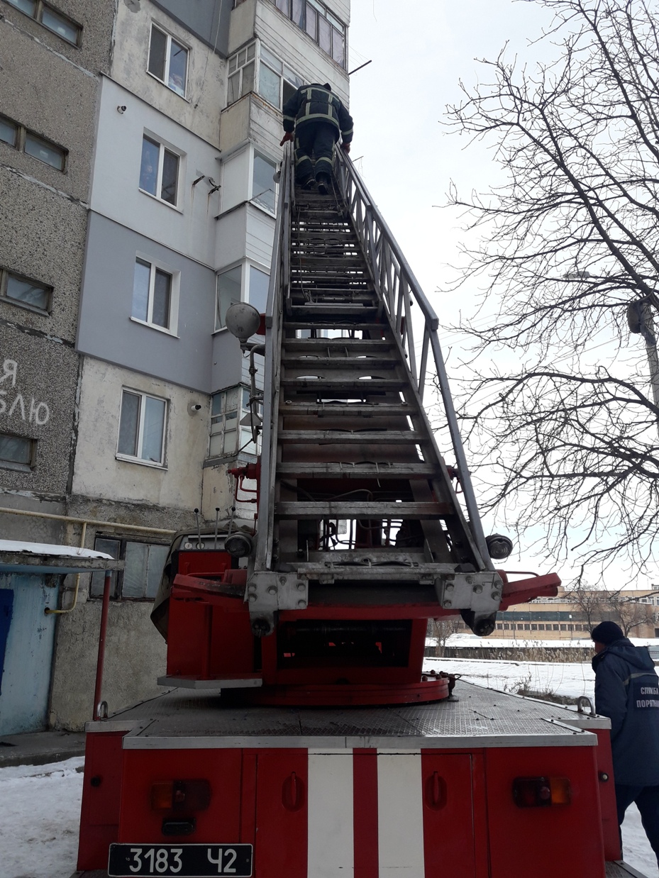 Рятувальники 1-го Державного пожежно-рятувального загону м. Кропивницький по автодрабині потрапили на балкон квартири та шанцевим інструментом відкрили балконні двері.