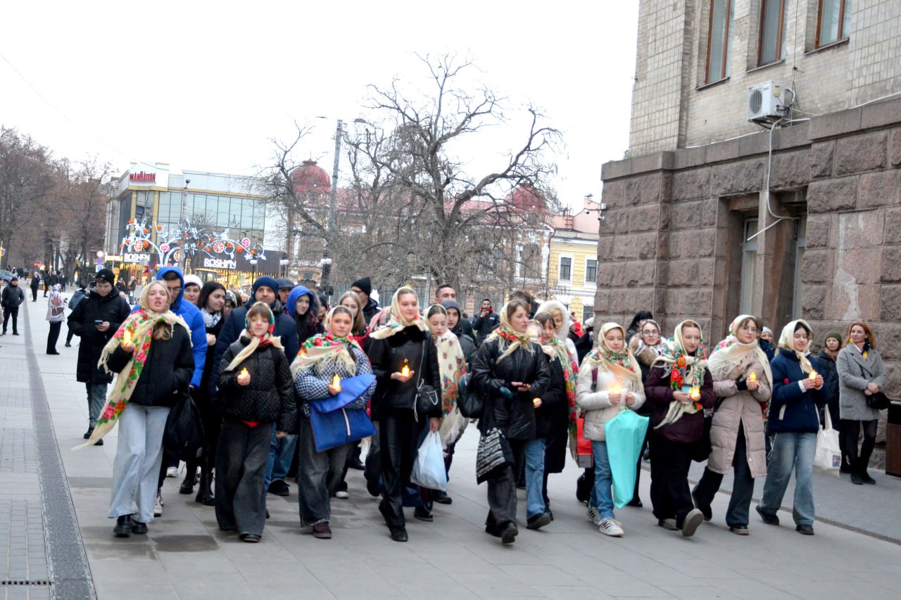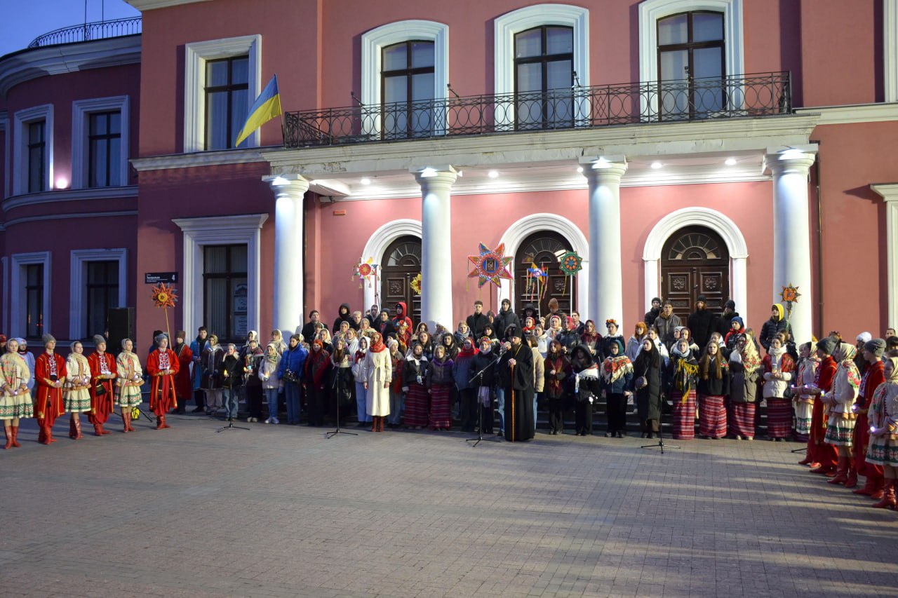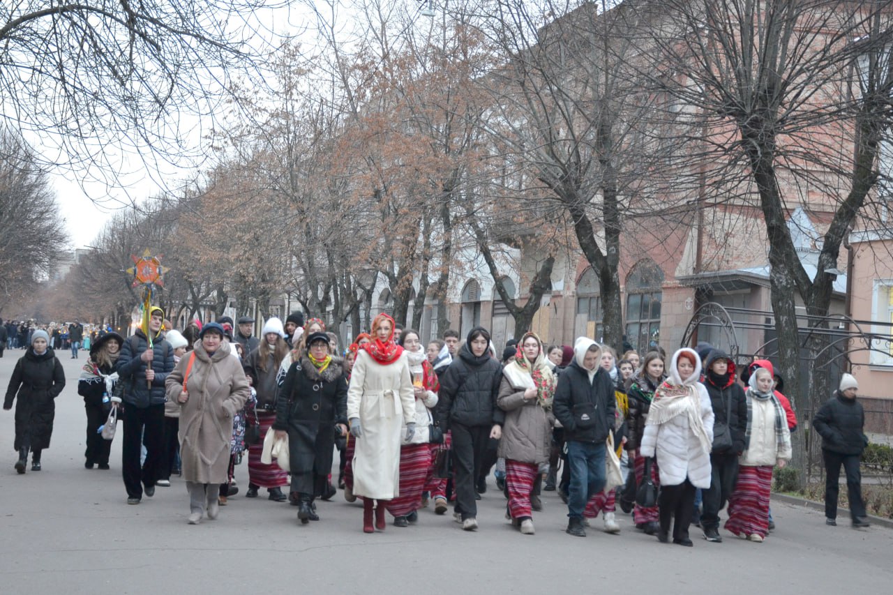 Творчі колективи нашого міста, серед яких – зведений хор Кропивницького музичного фахового коледжу, вихованці комунального позашкільного навчального закладу «Кіровоградський обласний центр дитячої та юнацької творчості», учні Центральноукраїнського наукового ліцею Кіровоградської обласної ради, актори Кіровоградського академічного обласного театру ляльок, студенти закладів освіти обласного центру та танцювальні колективи міста – пройшлися театралізованою ходою від площі Героїв Майдану до Театру корифеїв, співаючи та колядуючи.
