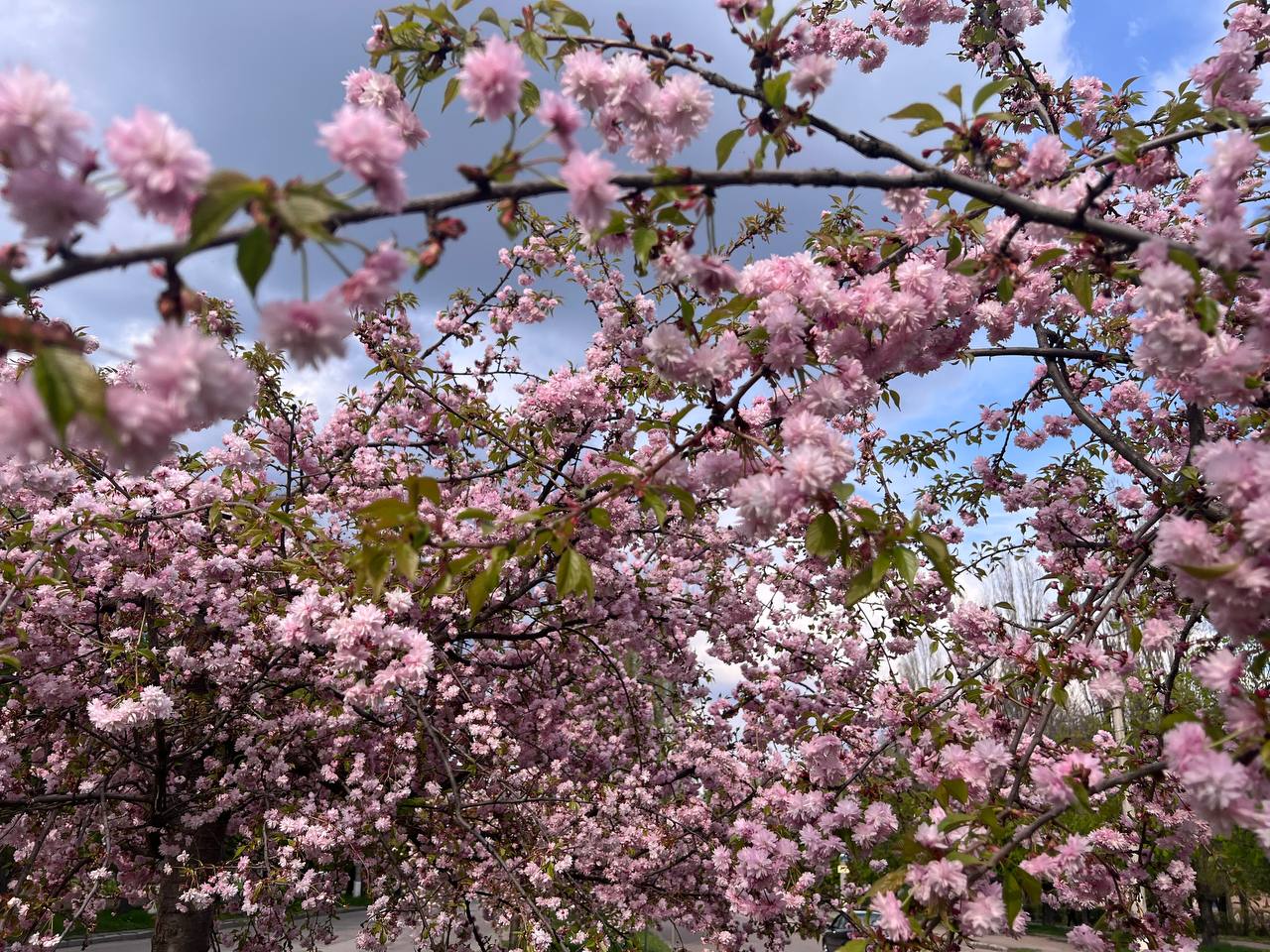 Алея квітучих японських вишень розквітла на вулиці Юрія Коваленка.