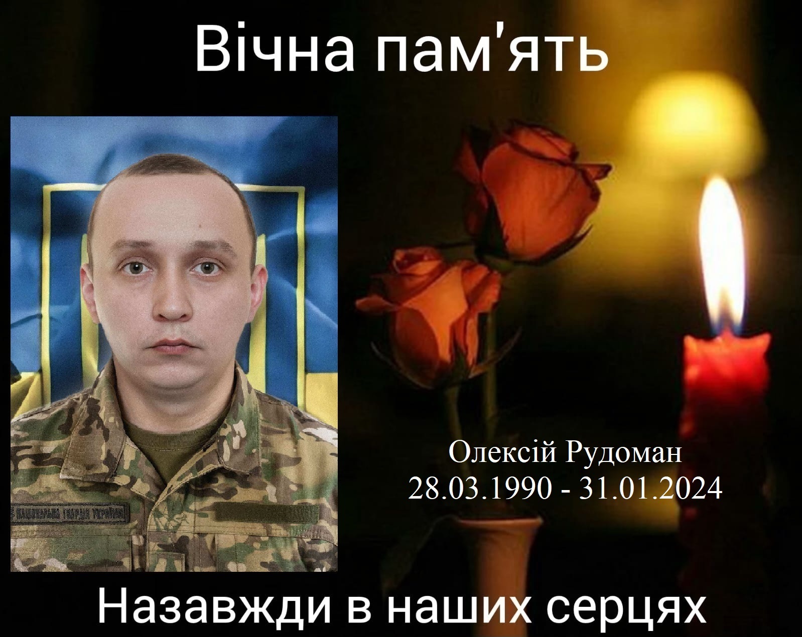 Старший солдат Олексій Рудоман, 1990 року народження прийняв свій останній бій 31 січня 2024 року, зупиняючи російських агресорів біля населеного пункту Мала Токмачка, Пологівського району Запорізької області.
