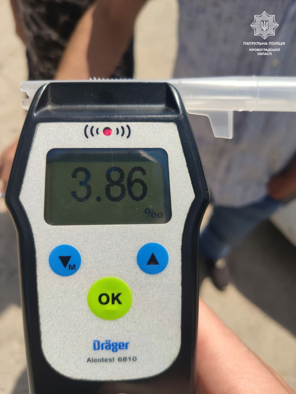 Прилад Драгер показав 3,86 проміле. Це у 19 разів більше допустимої норми.