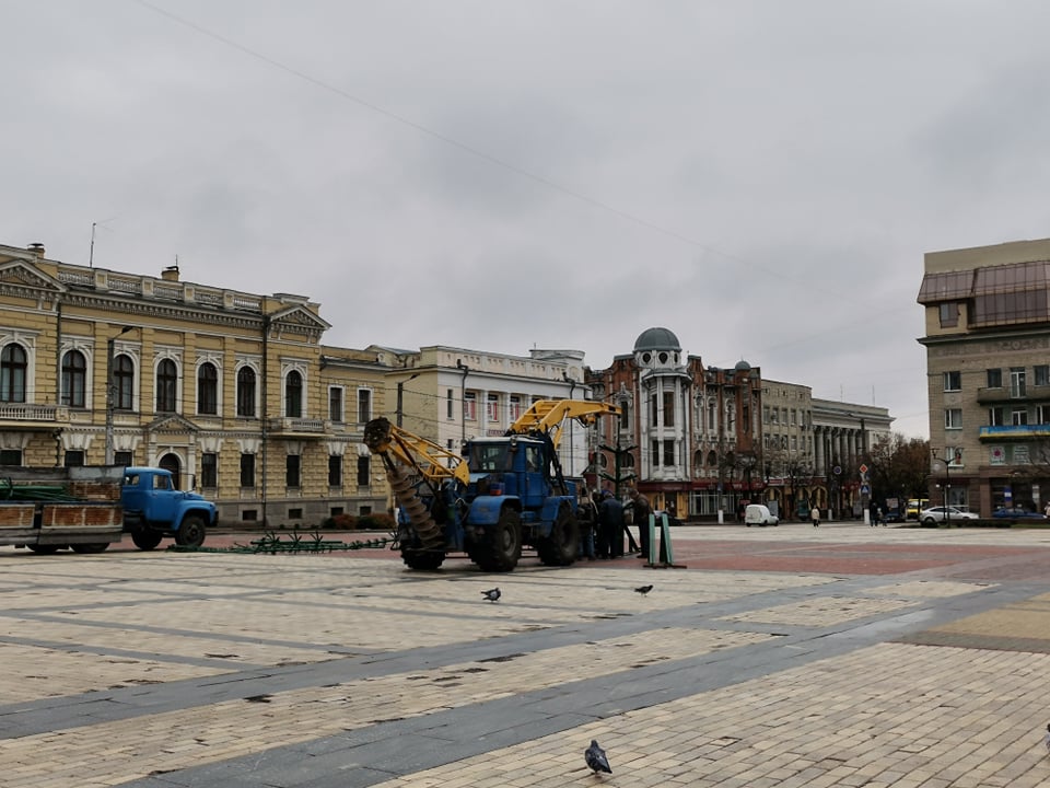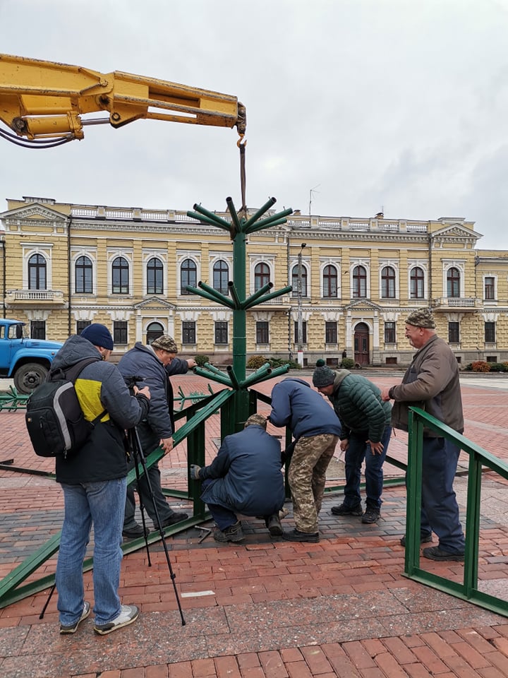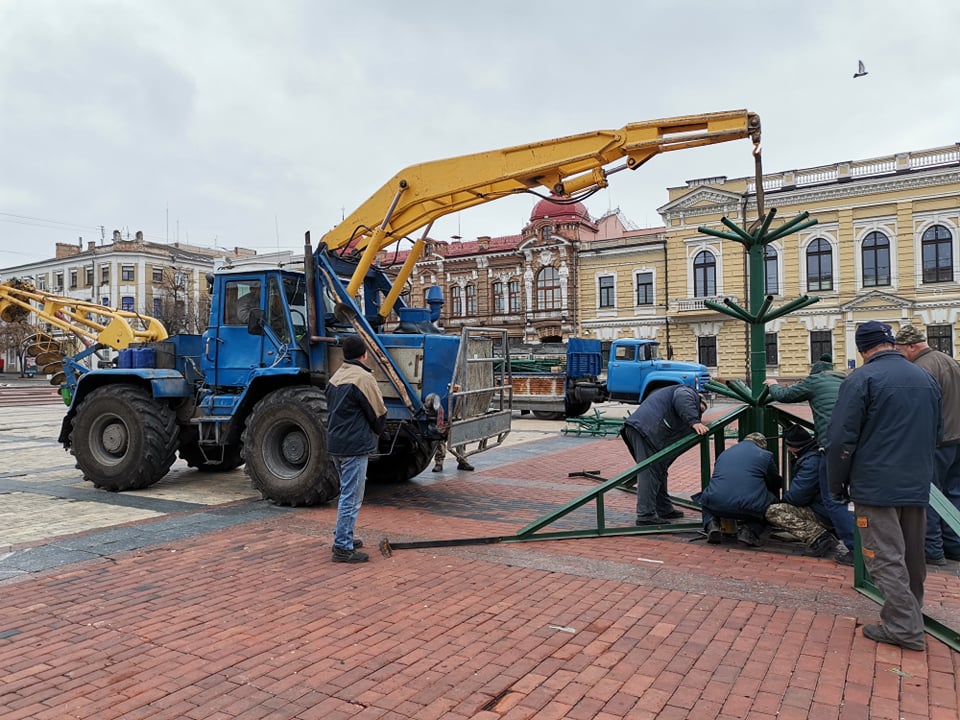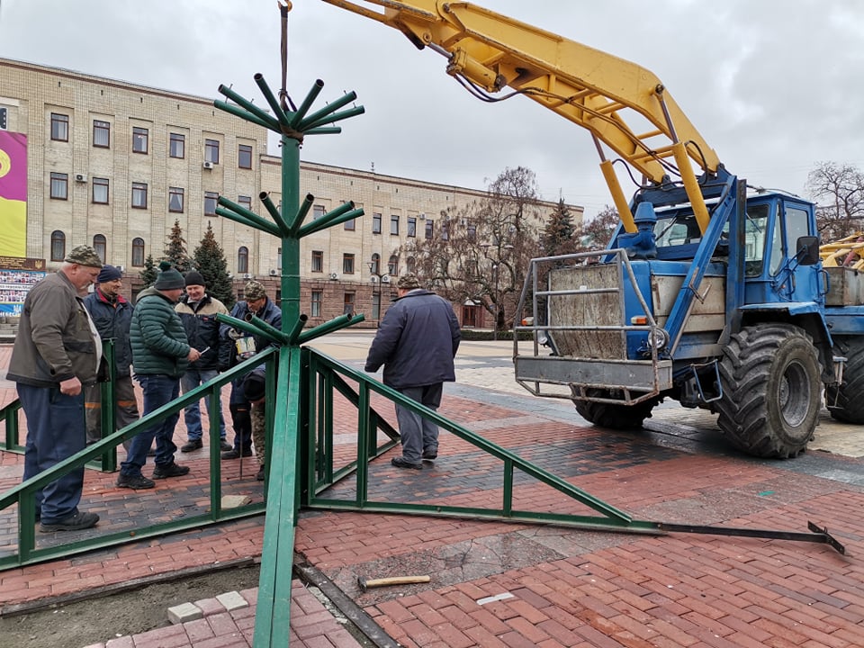 За словами комунальникiв, встановлюють вони стару 14 – метрову ялинку. Завершать роботи до Дня Святого Миколая.