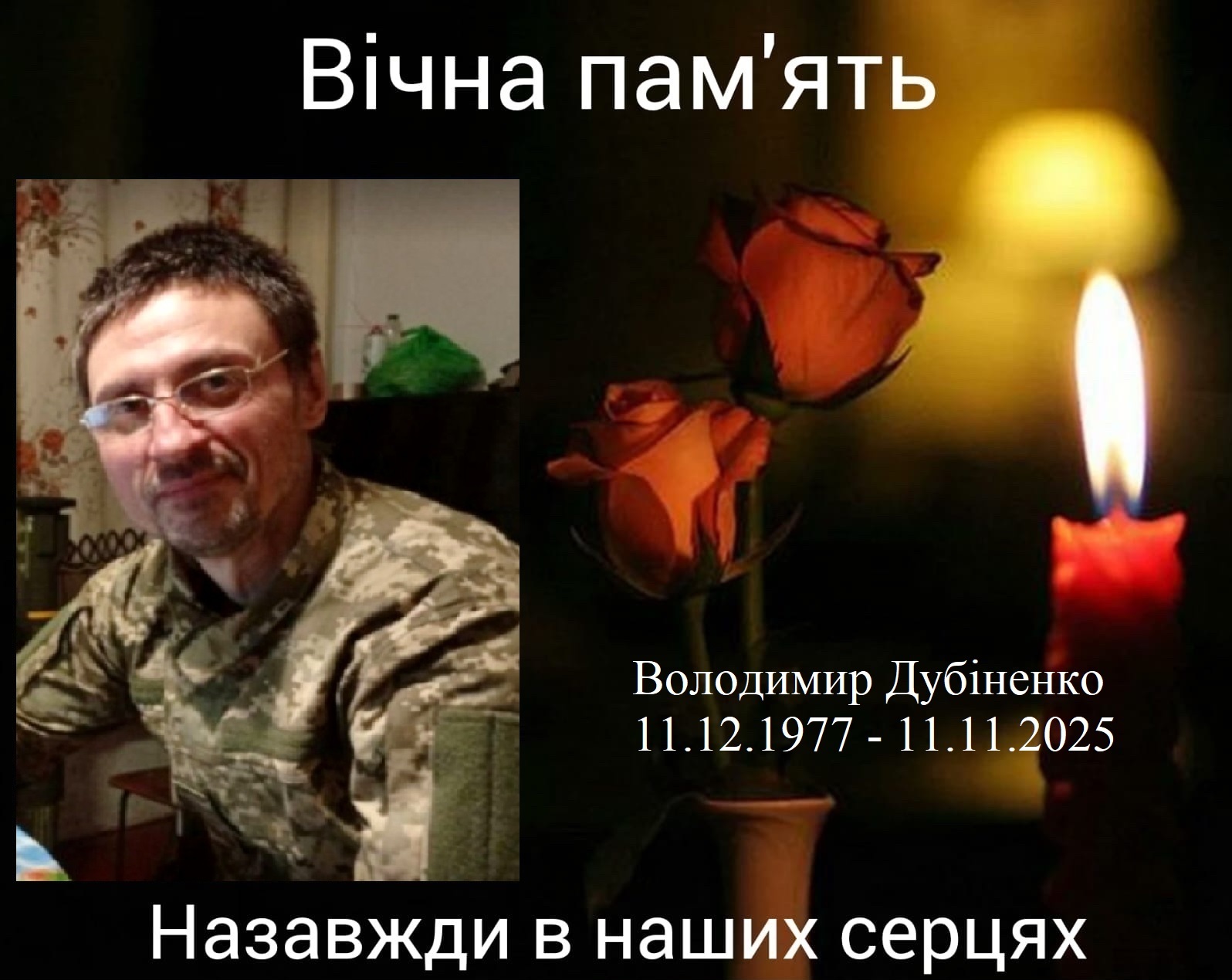 Володимир Дубiненко був людиною з великим серцем — доброзичливим, щирим, справедливим. Його знали як надiйного друга, турботливого сина та вiрного товариша. Вiн умiв знаходити правильнi слова пiдтримки, був прикладом людяностi та чесностi. Нiколи не залишався байдужим до чужого горя, завжди знаходив спосiб допомогти — словом i дiлом.