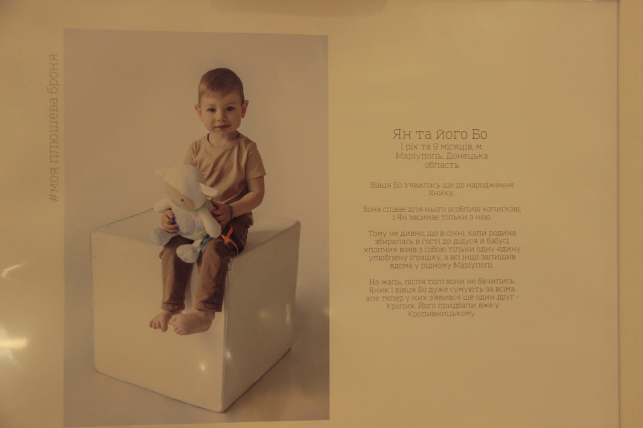 Авторка виставки – місцева фотографиня Марія Жалоба, презентувала світлини дітей, які виїхали з окупованих територій до Кропивницького, разом зі своїми іграшками.