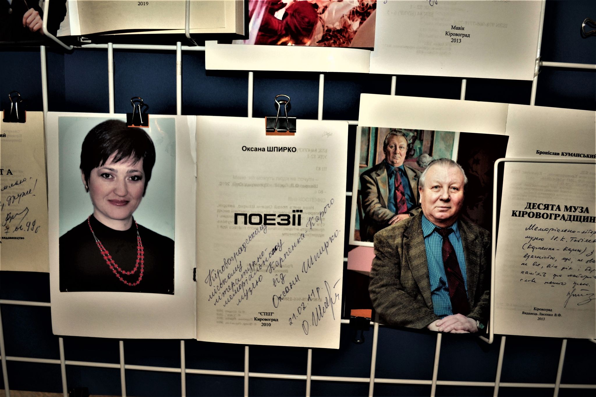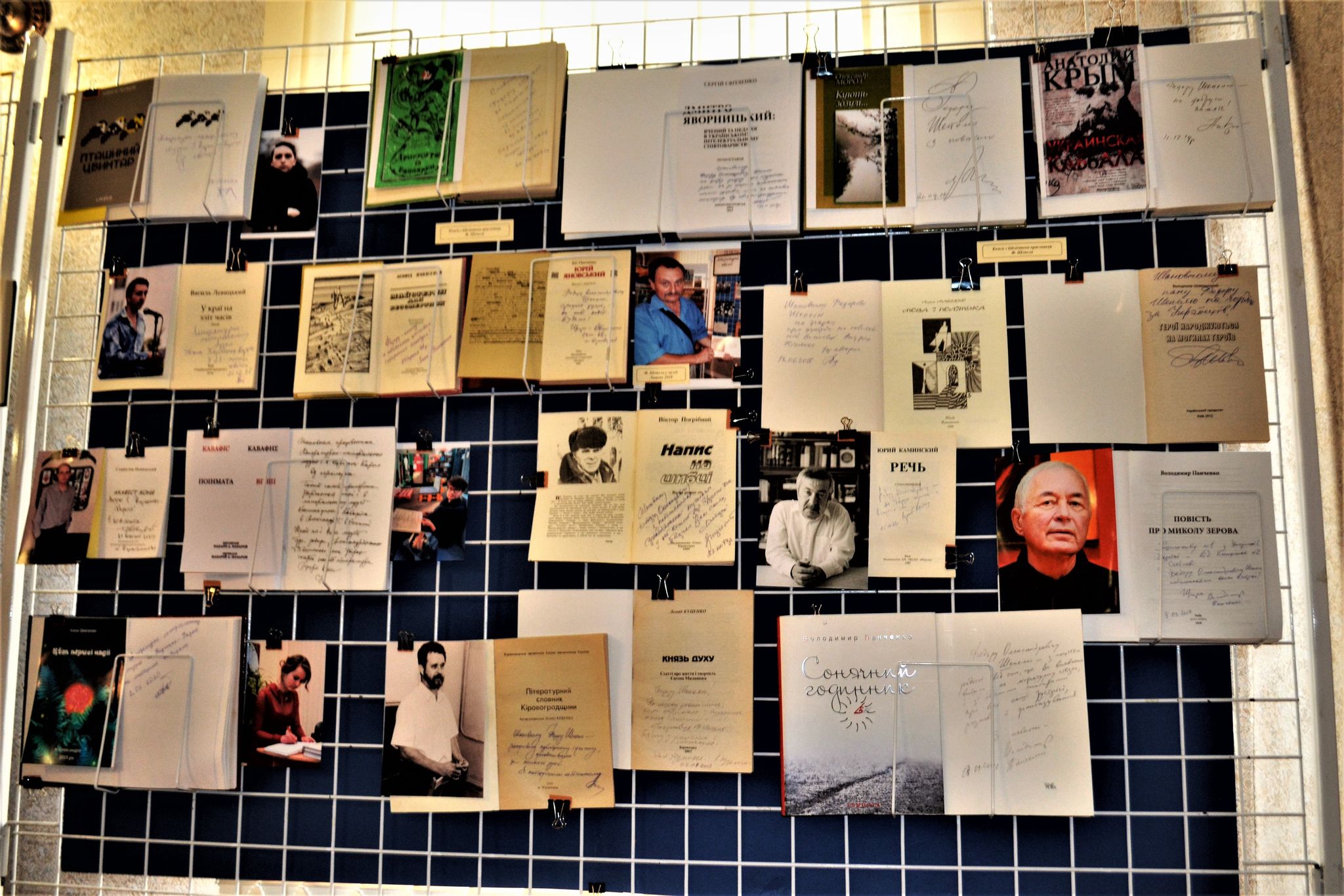 На виставці представлені книги з особистим підписом, зокрема, Сави Голованівського, Євгена Доломана, Олени Журливої, Леоніда Тендюка, Людмили Скирди, Миколи Смоленчука, Івана Хоменка, Василя Бондаря, Валерія Гончаренка, Віктора Погрібного, Віктора Терена, Віктора Ганоцького, Бориса Ревчуна, Антоніни Царук, Володимира Панченка, Федора Непоменка, Антоніни Корінь, Ольги Полевіної, молодих літераторів Василя Левицького, Аліни Шевченко, Станіслава Новицького, Назара Назарова.