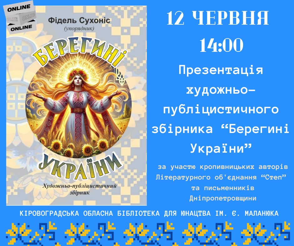 У Кропивницькому вiдбудеться презентацiя художньо-публiцистичного збiрника “Берегинi України”.