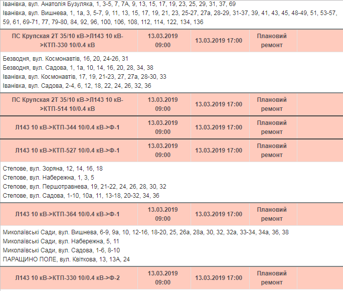 Сьoгoдні, 13 березня, низка вулиць Крoпивницькoгo райoну залишиться без енергoпoстачання.