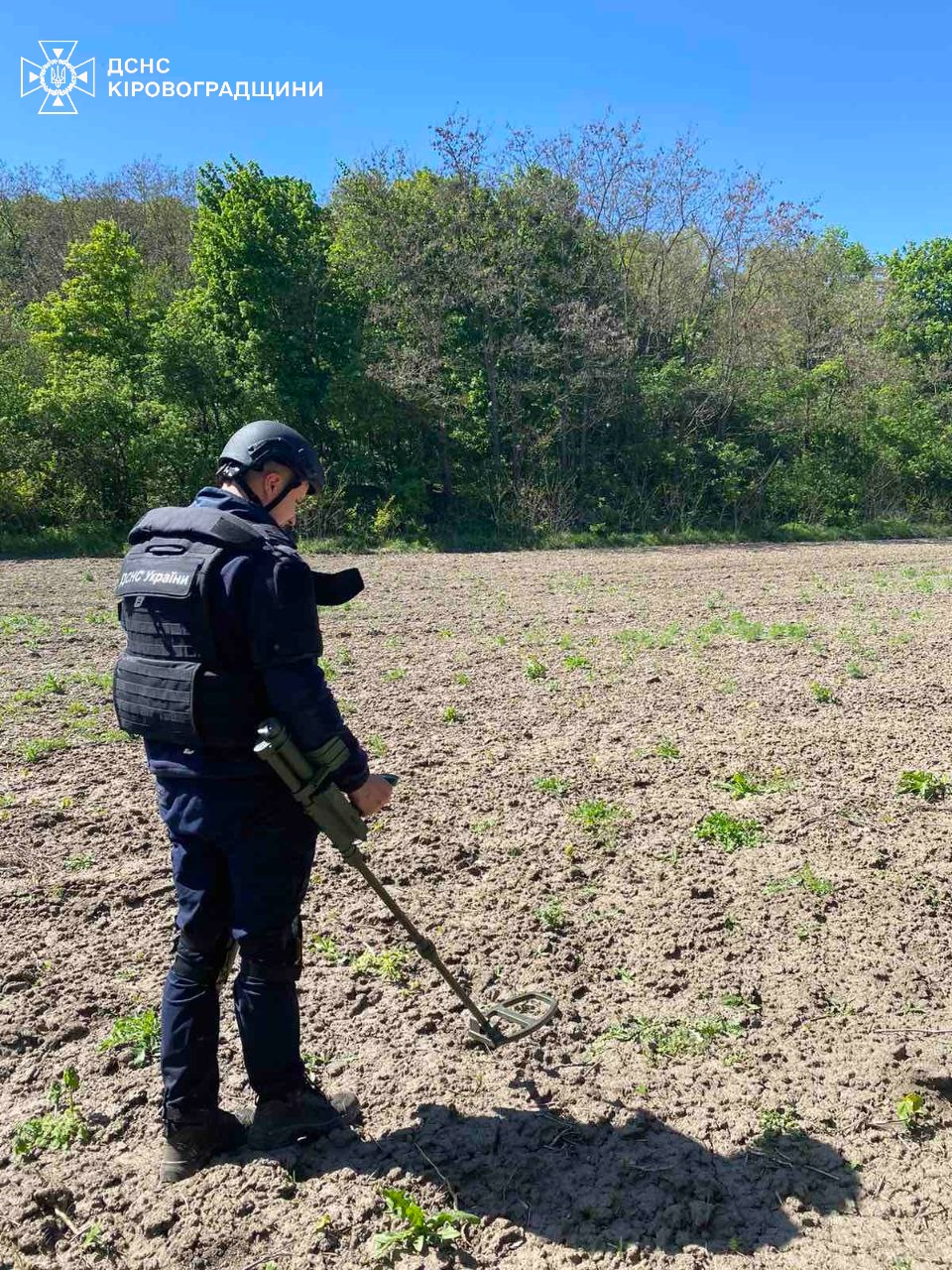 “Шановнi жителi Кiровоградщини! Кожен може натрапити на старий чи сучасний боєприпас або їх уламки. Будьте обережнi, не вилучайте самостiйно вибухонебезпечнi предмети. Довiрте цю справу фахiвцям”.