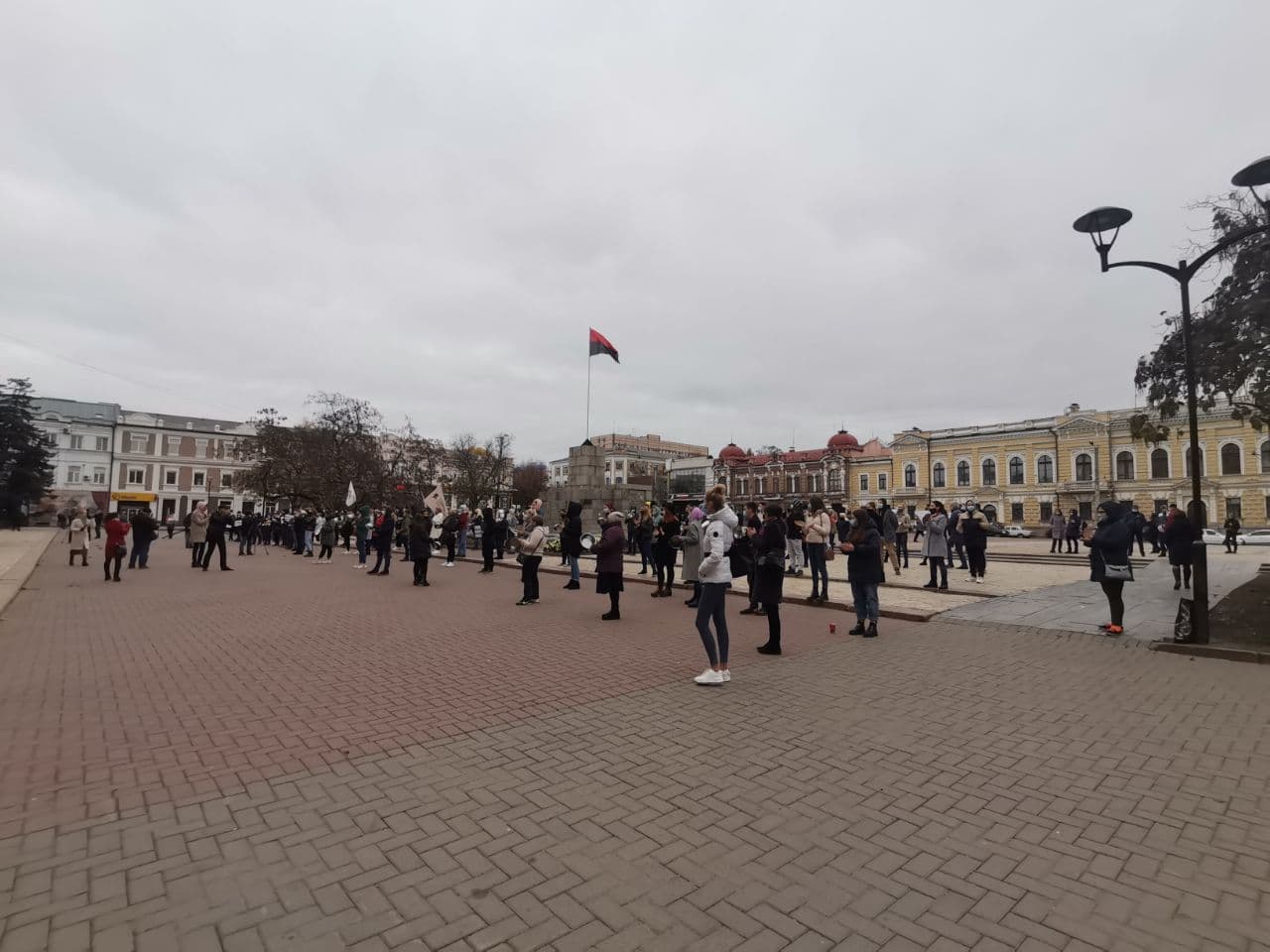 Об 11-й годині близько 250 людей вийшли на головну площу мiста – Героїв Майдану.