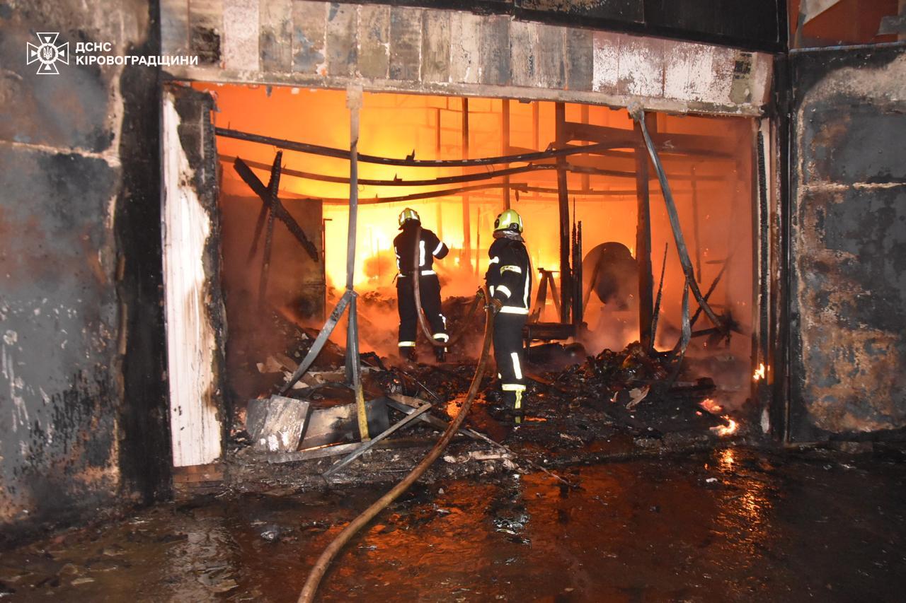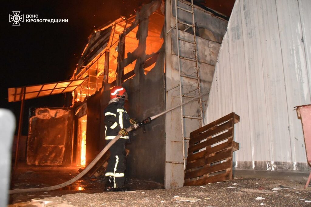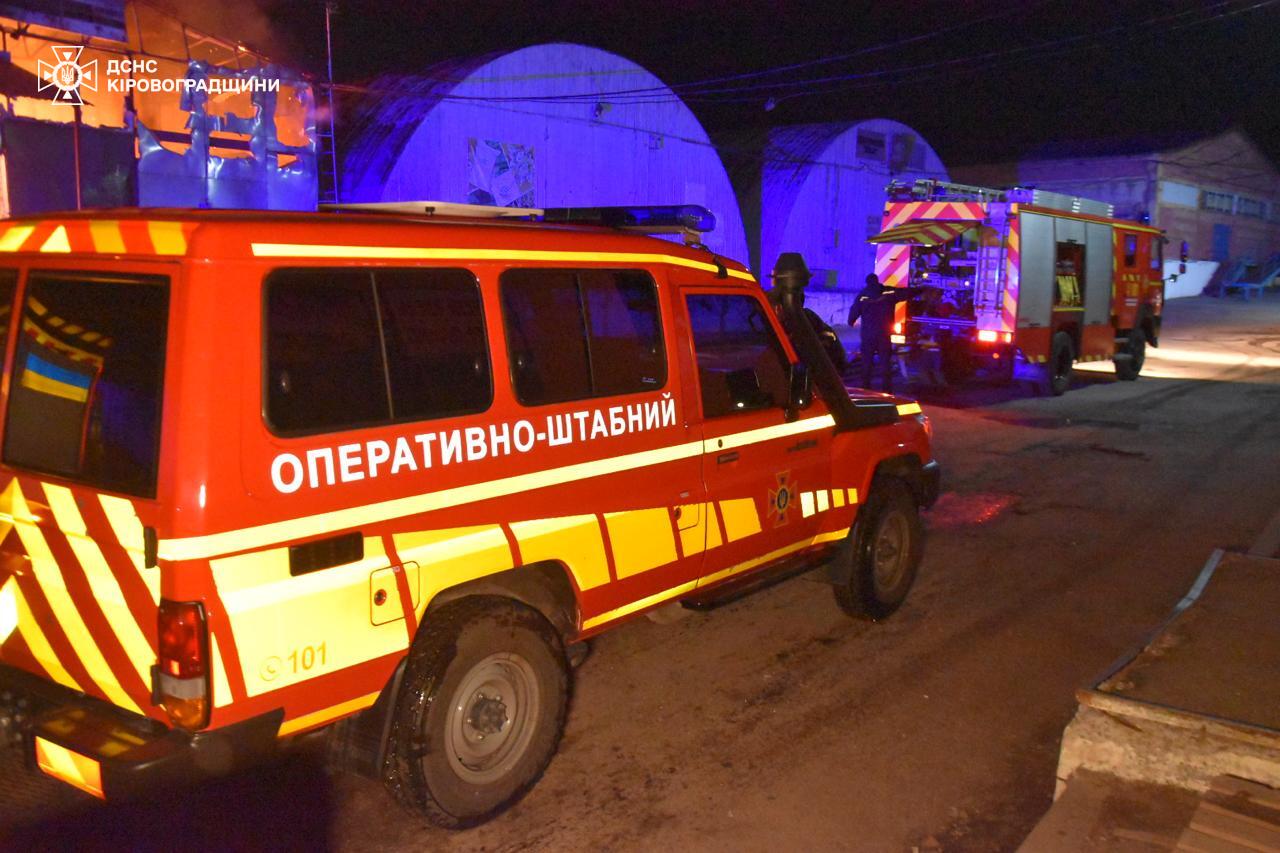 Вже 28 листопада о 03:00 надійшов ще один виклик з обласного центру. На вул. Кільцевій виникла пожежа 600 м2 покрівлі, 150 м2 металевих стін, 200 м2 обладнання та продовольча продукція й сировина на площі 50 м2 в ангарі. О 04:15 — пожежу було локалізовано, а о 08:14 — ліквідовано силами кропивницьких підрозділів ДСНС.