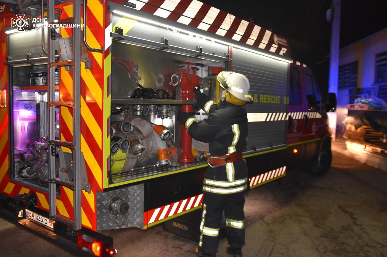 О 09:58 стало відомо про займання на вул. Євгена Тельнова обласного центру. Там горіло 8 м2 покрівлі та перекриття нежитлової будівлі. О 10:38 пожежу було ліквідовано кропивницькими вогнеборцями.