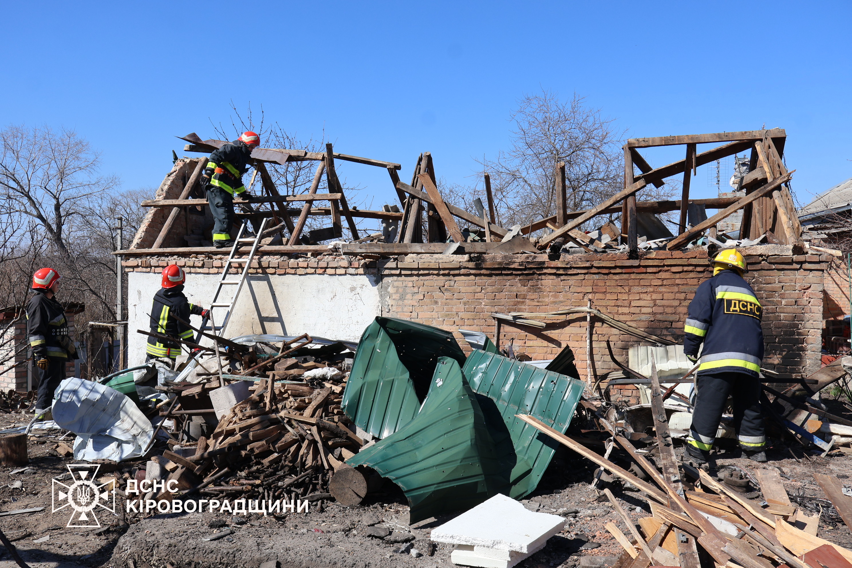 Рятувальники продовжують ліквідовувати наслідки ворожої атаки БПЛА на м. Кропивницький, яка сталась вночі 19 березня.