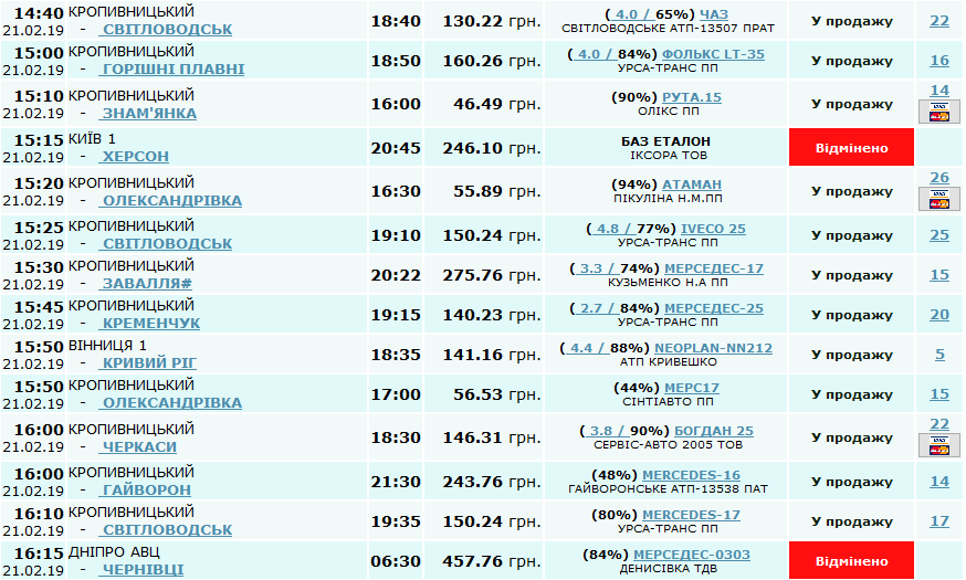 На автостанцiї №1 в обласному центрi сьогоднi, 21 лютого, скасували низку автобусних рейсiв.