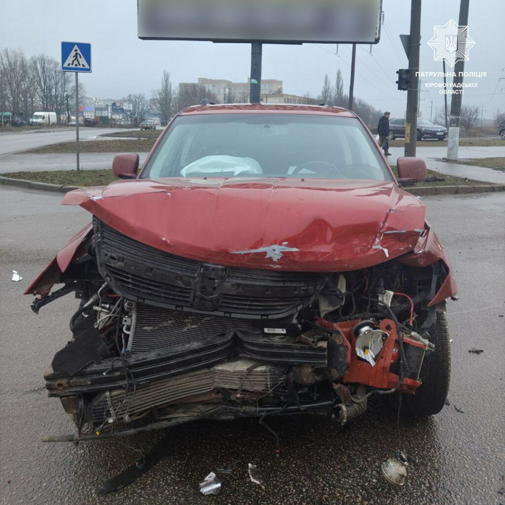 Водiй легковика Tesla Model 3 рухався через перехрестя на заборонний сигнал свiтлофора та здiйснив зiткнення з автомобiлем Dodge Journey, який проїжджав на зелений сигнал.