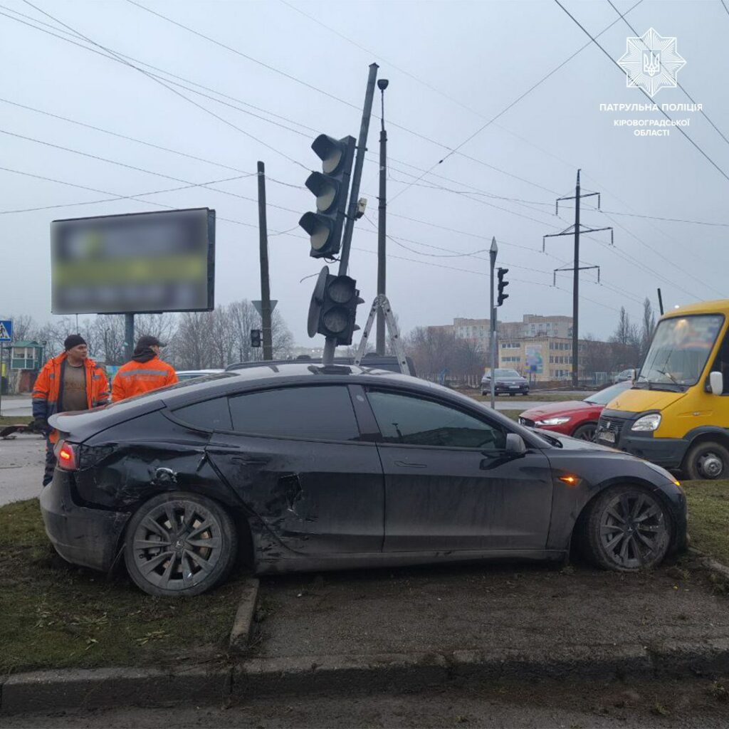 Унаслiдок удару Tesla розпочав некерований рух та здiйснив наїзд на свiтлофорний об’єкт, пошкодивши його.