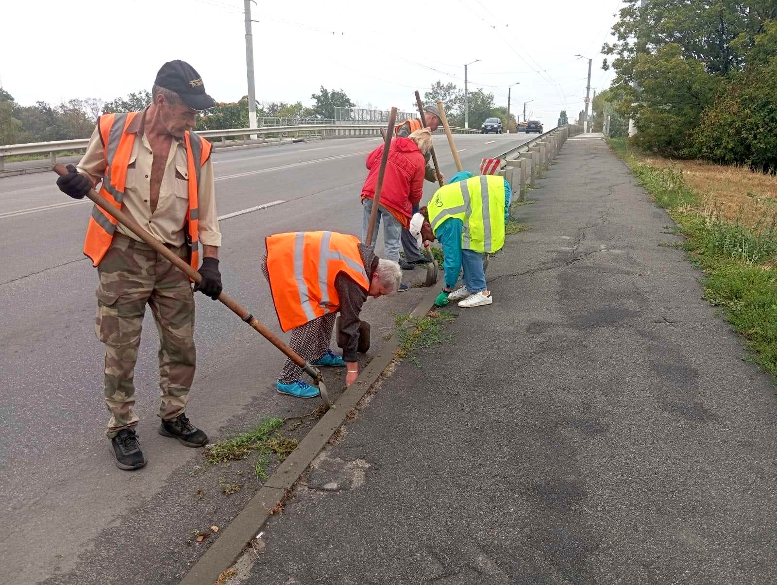 Дві бригади спеціалістів КП розчищають від бур’янів та порослі дорогу і тротуари по вулиці Євгена Тельнова та по вулицях Романа Шухевича і Полтавській.