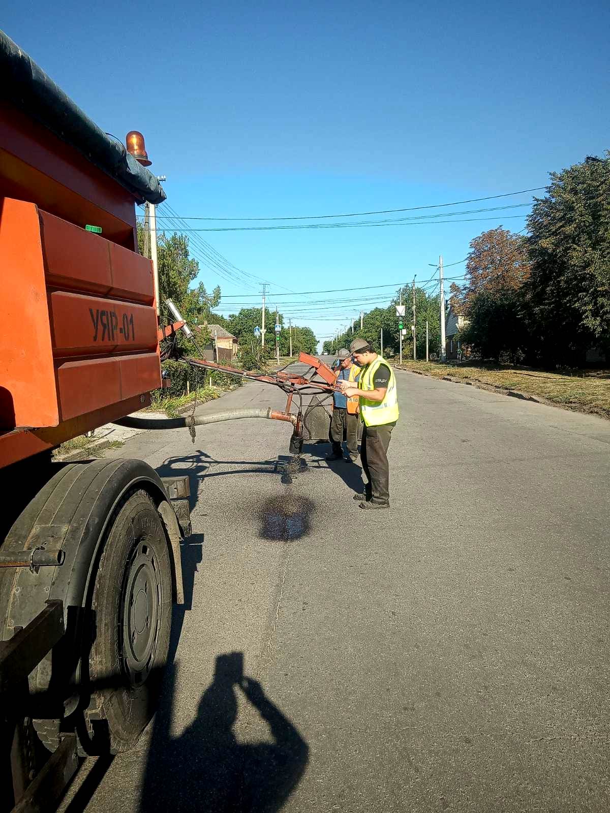 Сьогодні фахівці і техніка комунального підприємства «Універсал 2005» працюють також над ліквідацією ямковості за допомогою установки УЯР по вулиці Варшавській, провулку Експериментальному та засипають сколом дорожнє покриття по проспекту Промисловому.