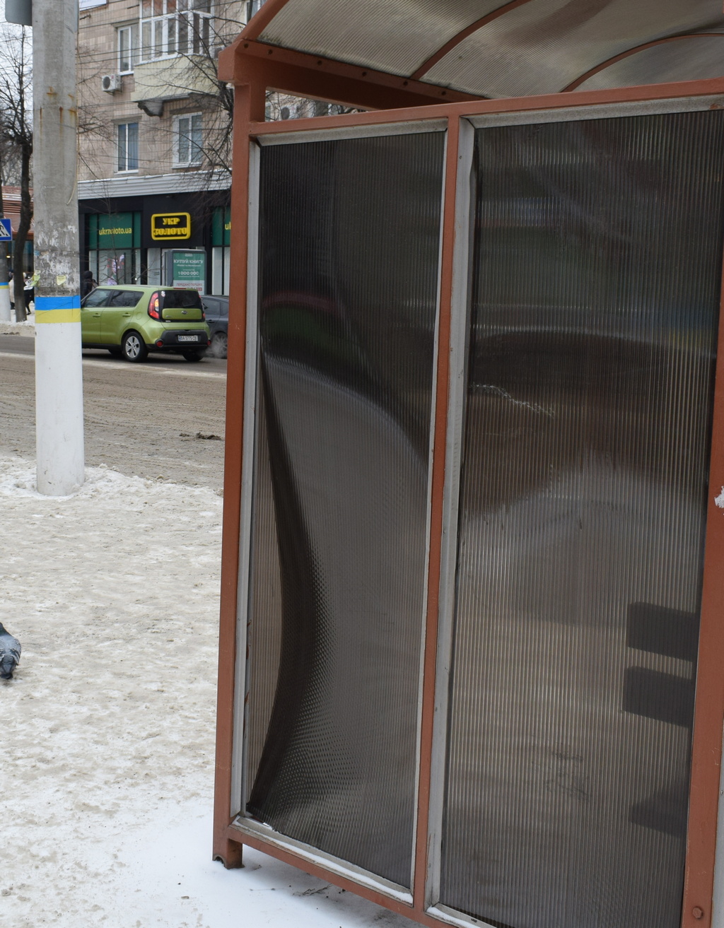 Утім уже через два дні нечемні кропивничани “подякували” комунальникам за роботу: побили і пошкодили нові секції і повернули зупинкам такий же неохайний вигляд.