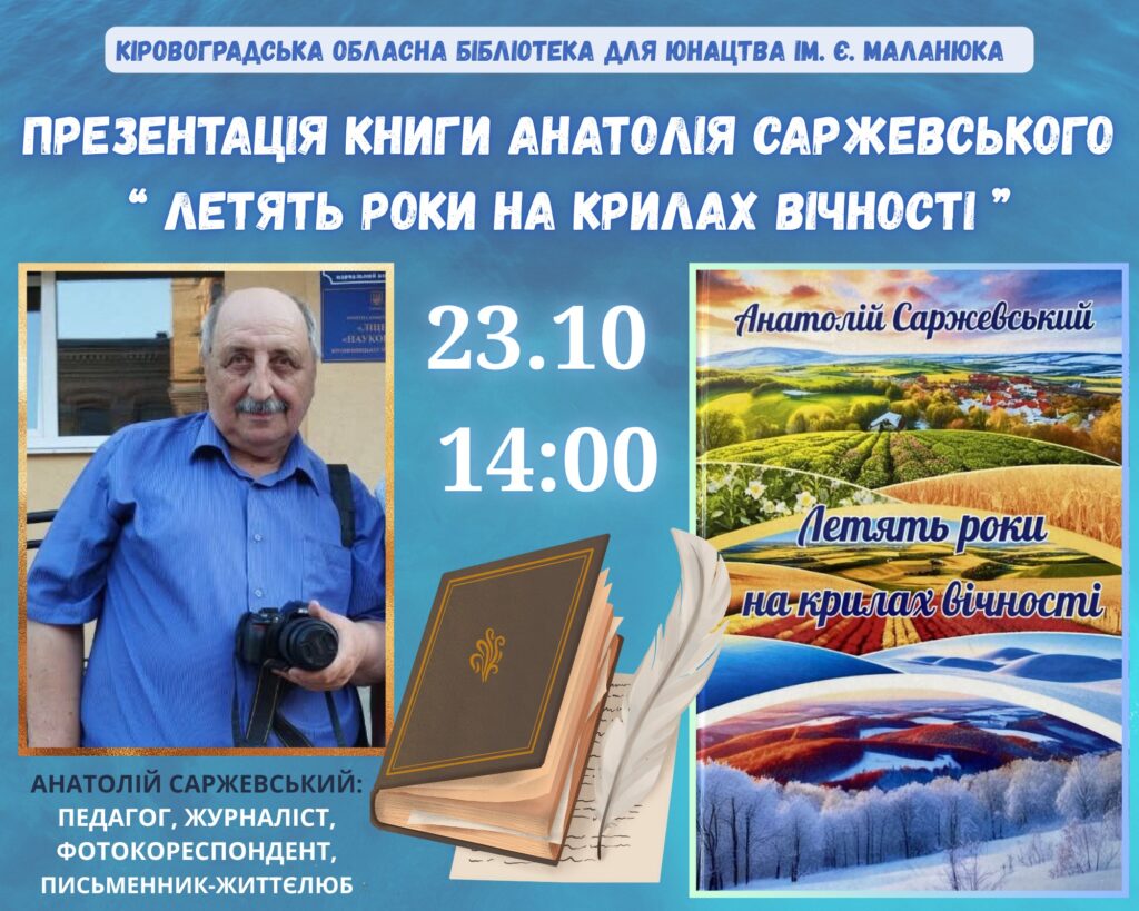 “Також, у рамках зустрічі, поговоримо про першу книгу публіцистики – “Летять роки на крилах вічності”.