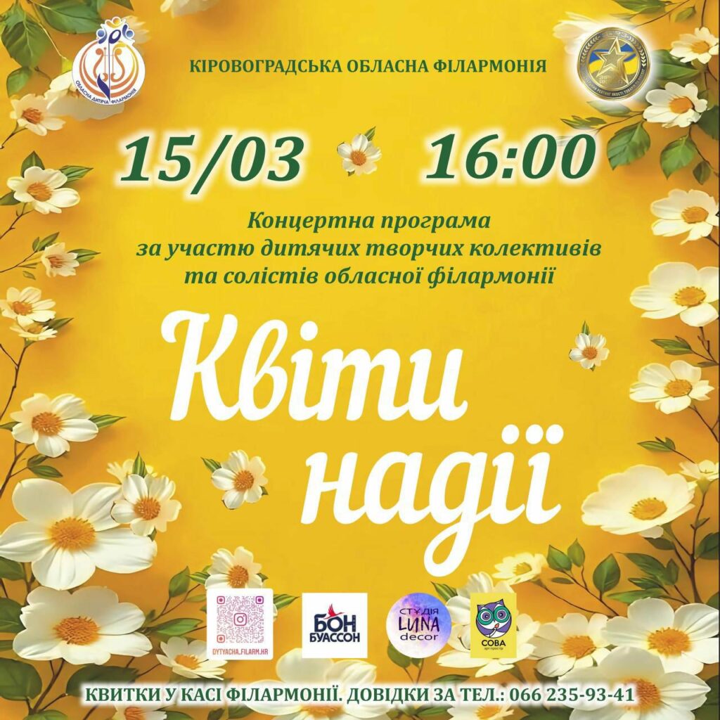 Обласна дитяча філармонія запрошує на особливий весняний концерт «Квіти надії».