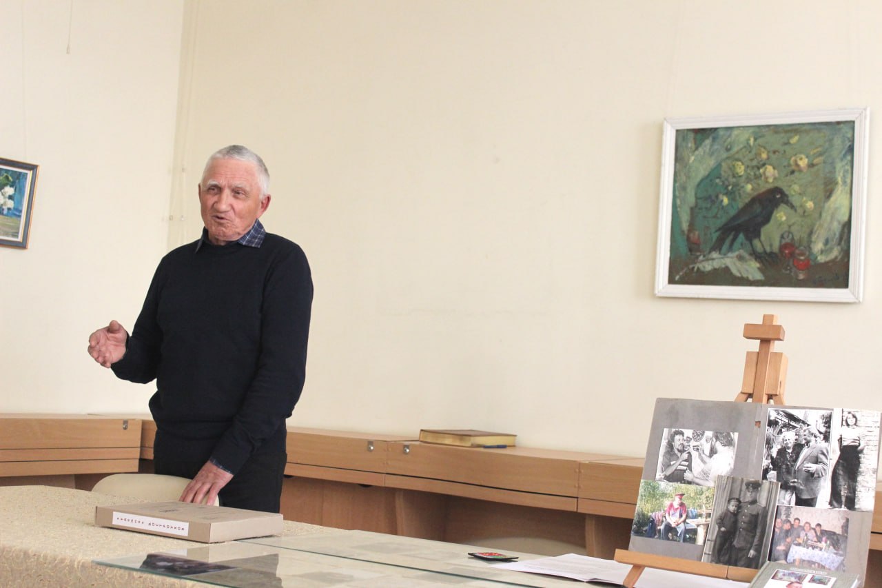 Про це вели мову на атмосферній зустрічі модератор Микола Цуканов заслужений художник України Анатолій Шаповалов, працівник галереї Сергій Каракулін, журналістка Олена Нікітіна, художник Ігор Смичек, засновниця аджамського притулку «Затишна оселя» Валерія Кривошапка. До них приєдналися спогадами кропивничанки Галина Рацул і Валентина Ноженко. А на закінченння зустрічі кожний з присутніх отримав у подарунок книжку «Художник. який не здався». Щоб пам’ятали…