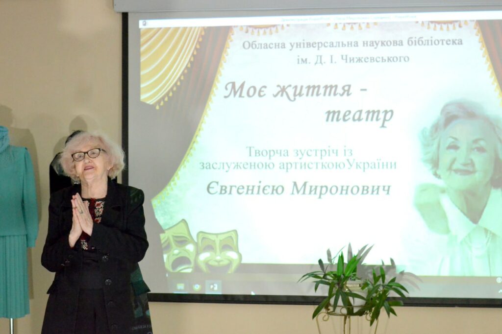 У книгозбiрнi iменi Д.I.Чижевського» вiдбулась творча зустрiч iз акторкою Театру Корифеїв, заслуженою артисткою України Євгенiєю Миронович.