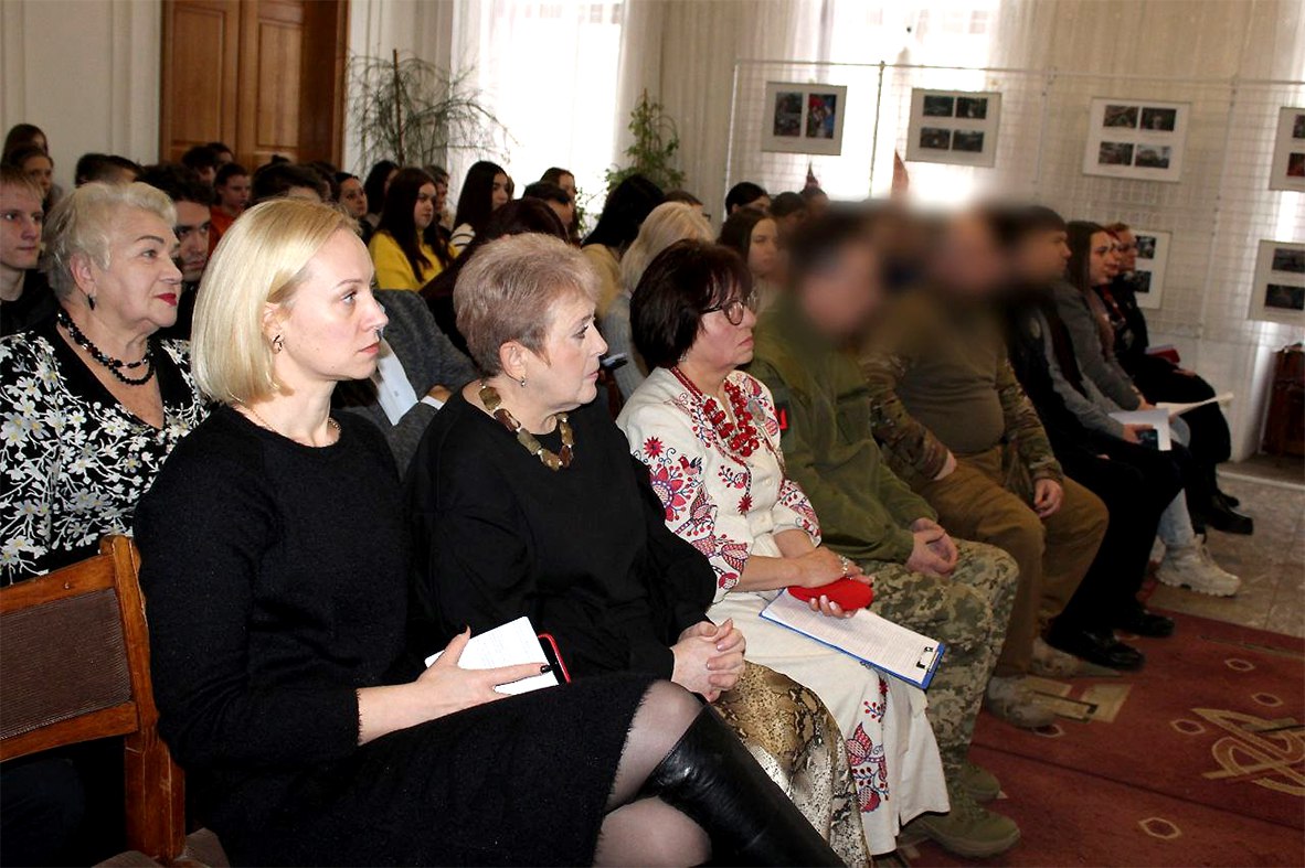 Особливо зворушливо звучали слова військових та матері загиблого воїна, майора держспецзв’язку Дмитра Кондратенка, Людмили Шибісти. Військова волонтерка громадської організації “Громадська варта” Вікторія Касьянова, розповідаючи про діяльність організації, наголосила, що колектив бібліотеки активно долучається до збору коштів та створення оберегів нашим воїнам.