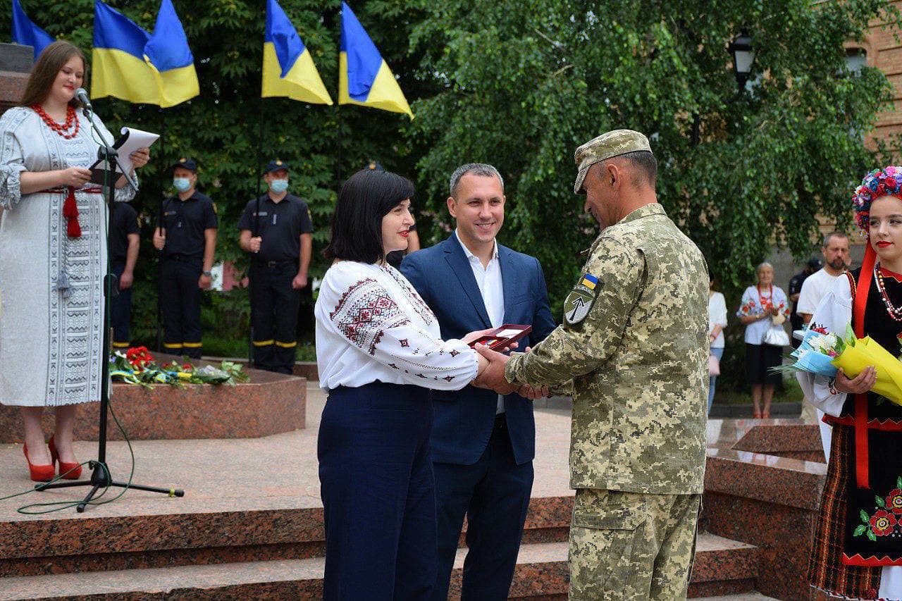 Серед 20 нагороджених – Віктор Чміленко, учасник Революції Гідності – син Героя України Віктора Чміленка (фермер, учасник Євромайдану загинув від кулі снайпера 20 лютого 2014 року), якому вручили орден “За мужність”.