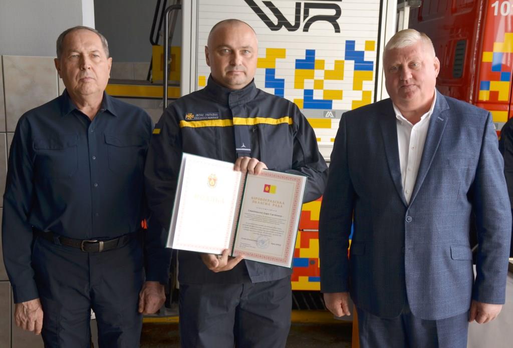 Юрій Дрозд та Андрій Райкович вручили рятувальникам державні та обласні відзнаки. Архієпископ Кропивницький та Голованівський Марк нагородив працівників ДСНС грамотами Православної церкви України.