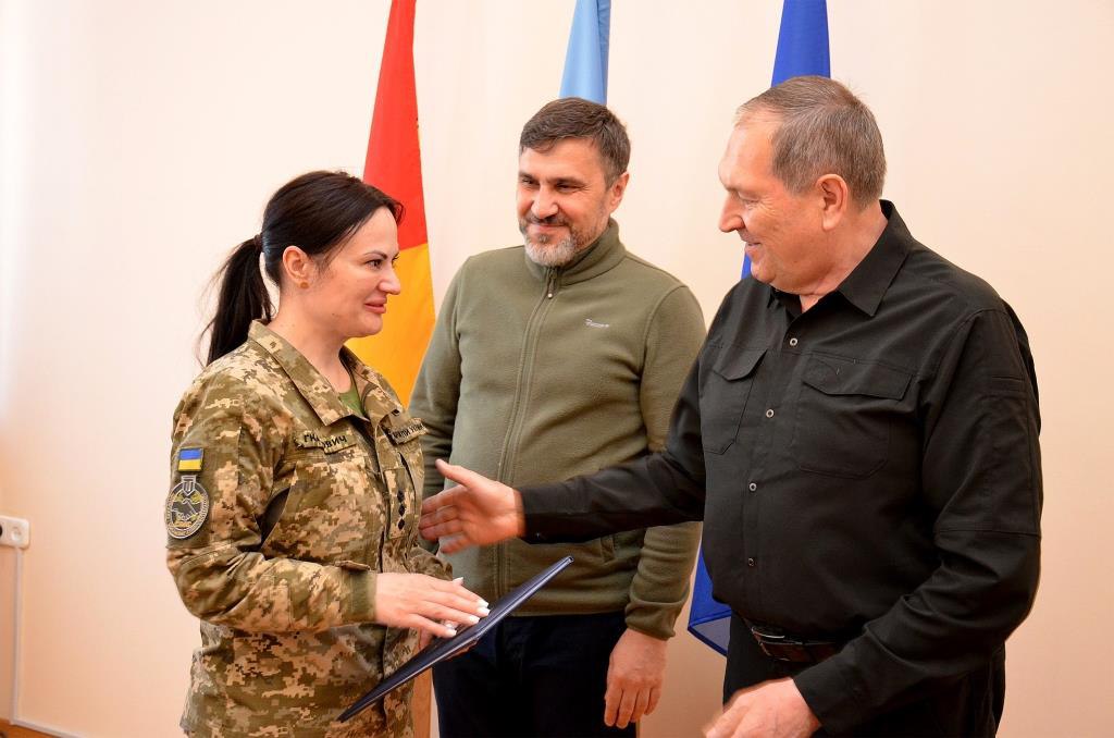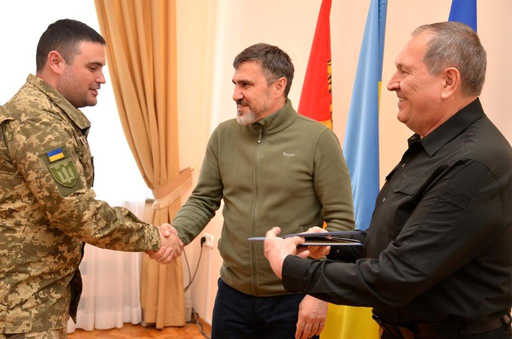 Начальник ОВА Андрій Райкович та перший заступник голови обласної ради Юрій Семенюк вручили військовим Відзнаки Кіровоградської області «За мужність і відвагу» та оголосили Подяки військової адміністрації. Нагородження приурочили до Дня фахівців цивільно-військового співробітництва Збройних Сил України, який відзначали 5 травня.