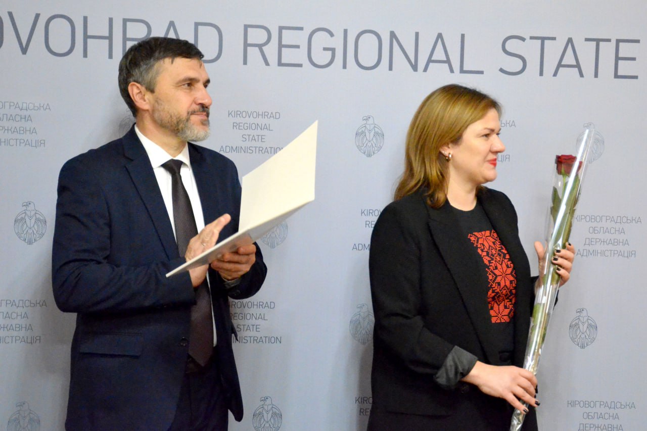 Вручили обласні нагороди та відзнаки перший заступник голови Кіровоградської обласної ради Юрій Семенюк та заступниця начальника обласної військової адміністрації Катерина Колтунова.