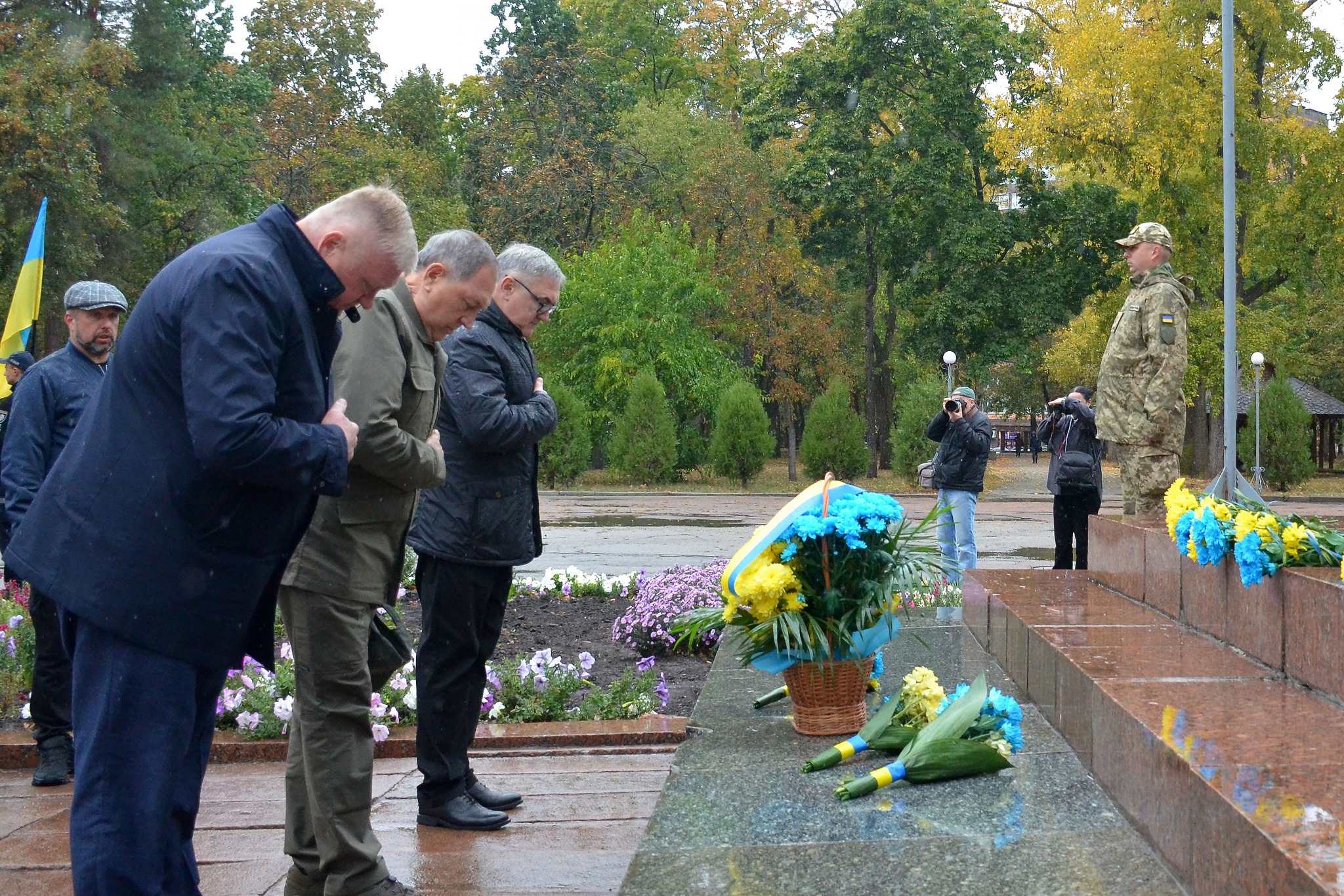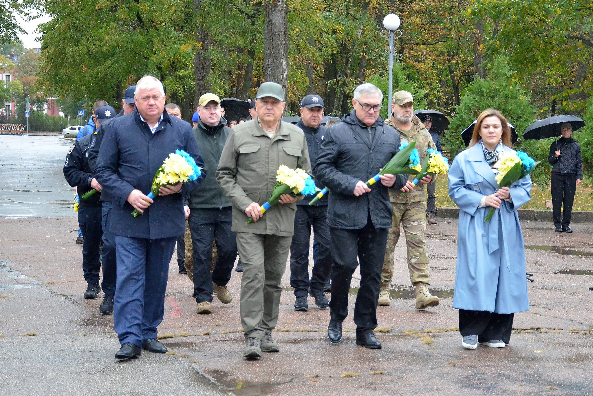 На початку заходів голова Кіровоградської обласної ради Юрій Дрозд, начальник обласної військової адміністрації Андрій Райкович, заступниця начальника ОВА Катерина Колтунова, заступник Кропивницького міського голови Олександр Мосін, начальник Кіровоградського гарнізону Владислав Зуєв, керівники силових структур Кіровоградщини поклали квіти до пам’ятного знаку загиблим воїнам 3-го окремого полку спеціального призначення імені князя Святослава Хороброго й разом із присутніми в загальнонаціональній хвилині мовчання вшанували пам’ять військових і цивільних, що стали жертвами російської агресії.