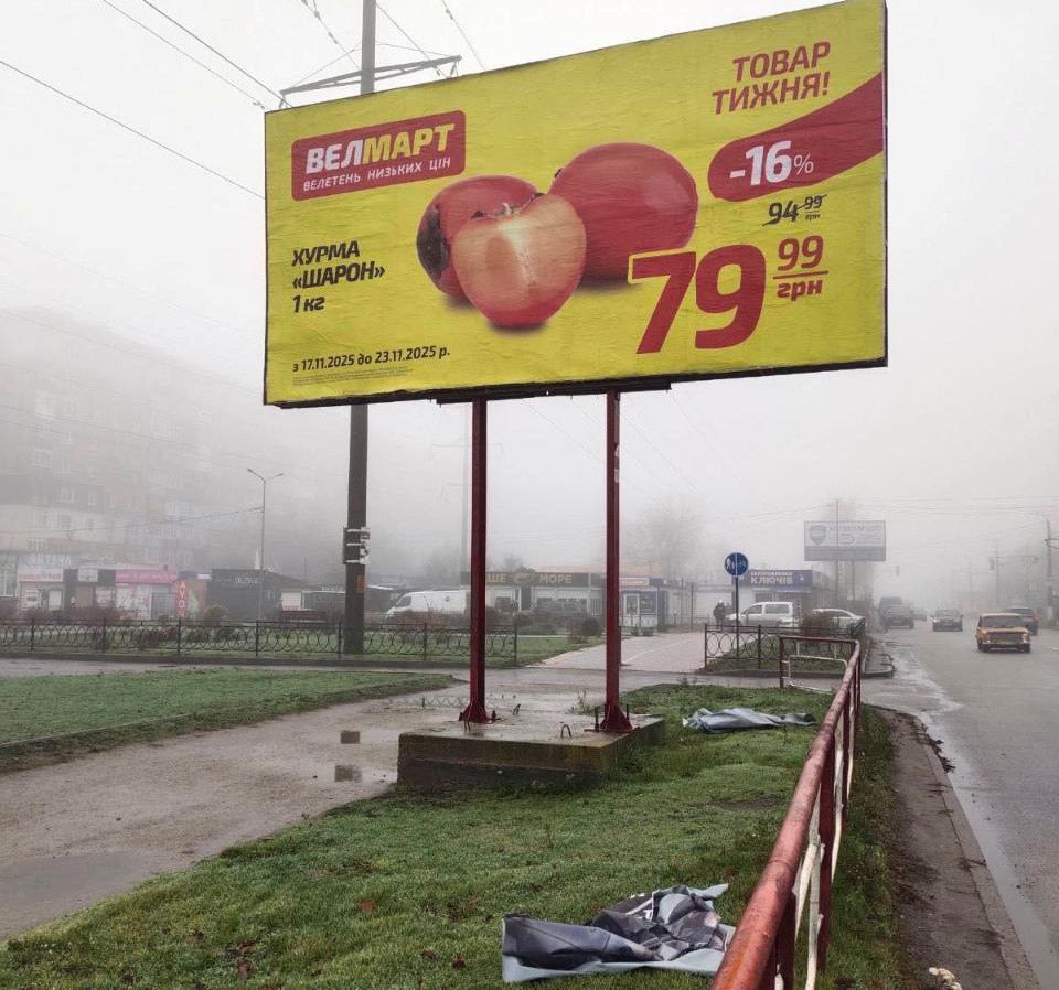 У зв’язку з різким погіршенням погодних умов, поривчастим вітром, опадами, на території міста зафіксовано численні випадки пошкодження та обриву рекламних конструкцій, зокрема білбордів та інших елементів зовнішньої реклами.