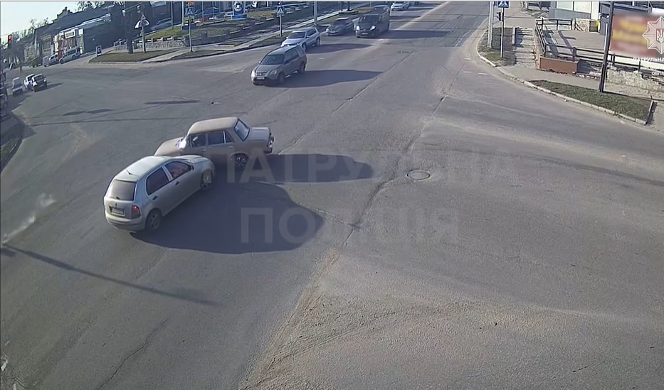 Водій легковика ВАЗ 2101 рухався через перехрестя на заборонний сигнал світлофора та здійснив зіткнення з автомобілем Skoda Fabia, який проїжджав на зелений сигнал.