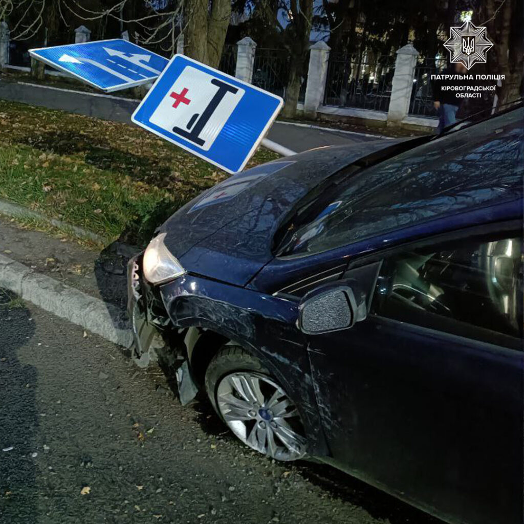 Пiсля чого автомобiль Ford Focus почав некерований рух та здiйснив наїзд на дорожнiй знак.