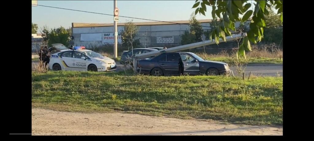 Водій, керуючи автомобілем Mercedes-Benz E 220, не вибрав безпечної швидкості руху, не впорався з керуванням та скоїв наїзд на перешкоду — стовп.