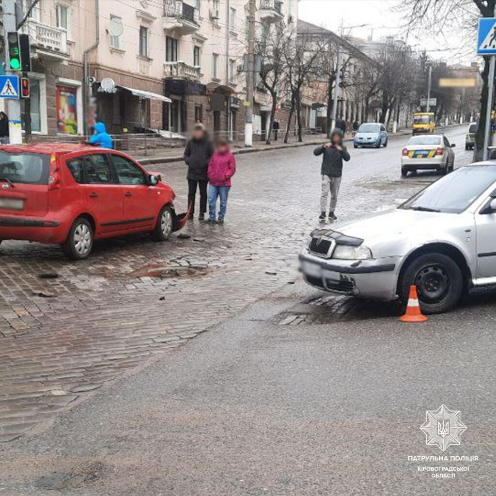 Рухаючись через перехрестя на заборонний сигнал світлофора, водій легковика Skoda не надав переваги в русі автомобілю Nissan, який проїжджав на зелений сигнал. Внаслідок чого сталося зіткнення.