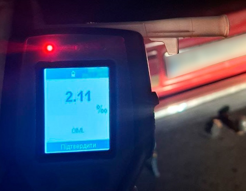 Перевірка за допомогою алкотестера Драгер показала 2,11 проміле, що у понад 10 разів перевищило допустиму норму.