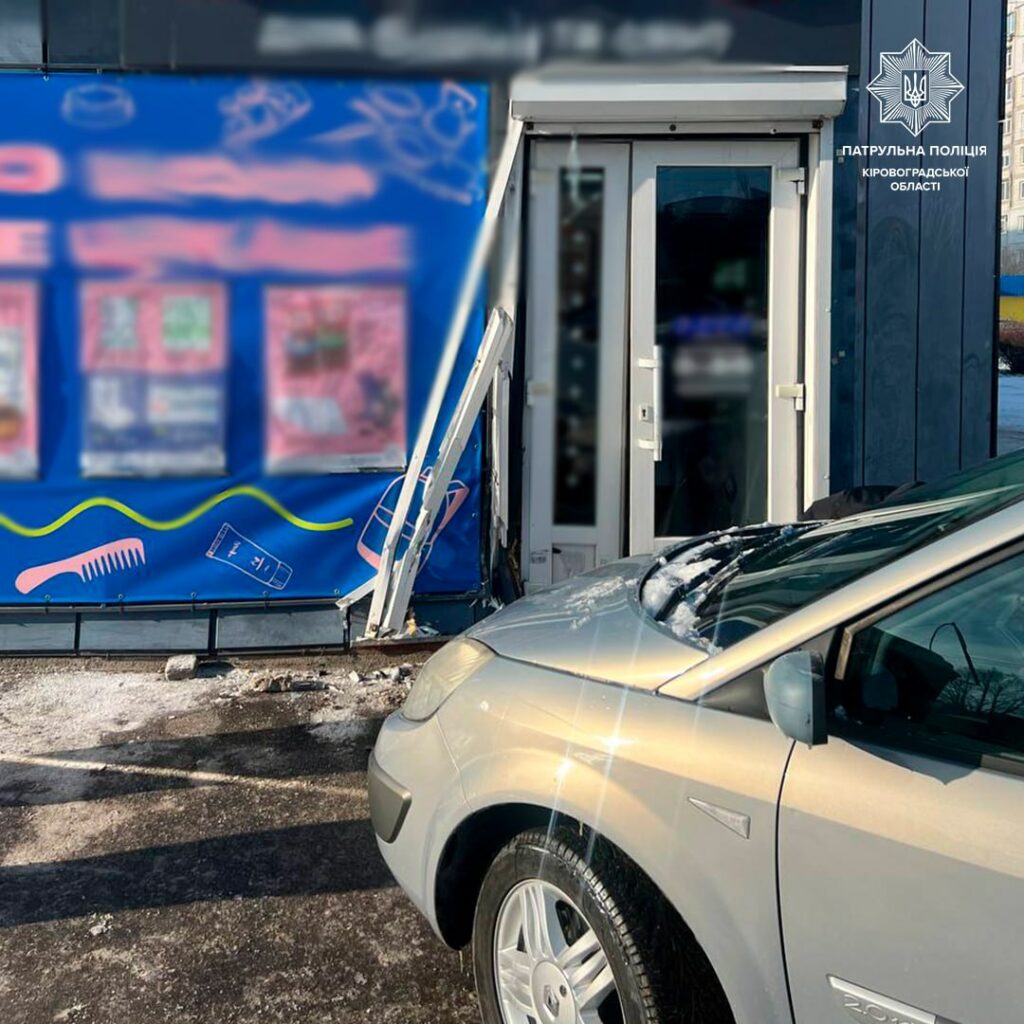 Водій, керуючи транспортним засобом Renault Scenic, повертаючи праворуч, не впорався з керуванням, не дотримався безпечної швидкості руху та скоїв наїзд на магазин.