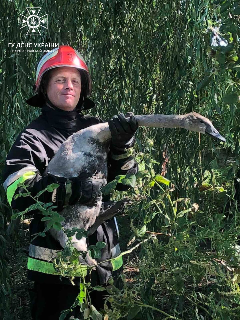 Кропивницькi рятувальники вивiльнили лебедя, який заплутався в огорожi.