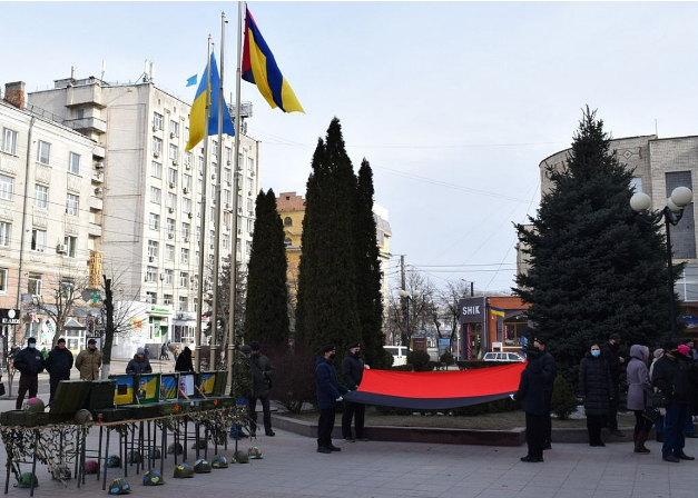 На честь героїв у Кропивницькому урочисто пiдняли прапор нацiонально-визвольної боротьби. Право його пiдняти отримали добровольцi – депутат Кропивницької мiської ради Вiталiй Вязовцев i голова громадської органiзацiї “Бойове братерство” Олександр Горбачов. Пiд славень 3-го полку спецпризначення червоно-чорний стяг затрiпотiв над площею у центрi Кропивницького.