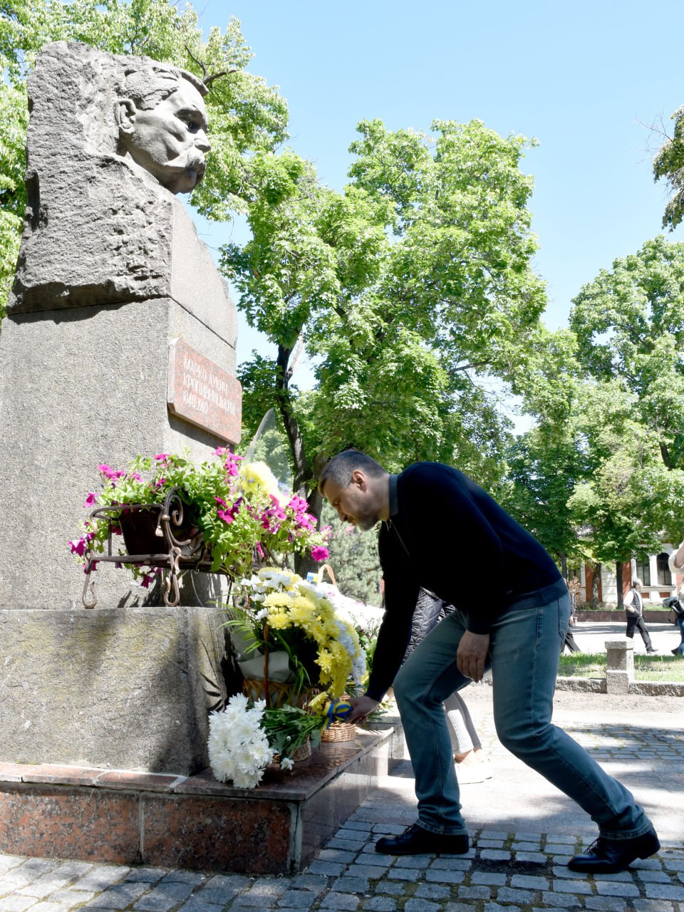 На завершення урочистої частини відзначення річниці з дня народження Марка Кропивницького, Юрій Семенюк поклав квіти до погруддя митця, встановленого у сквері біля Театру Корифеїв.