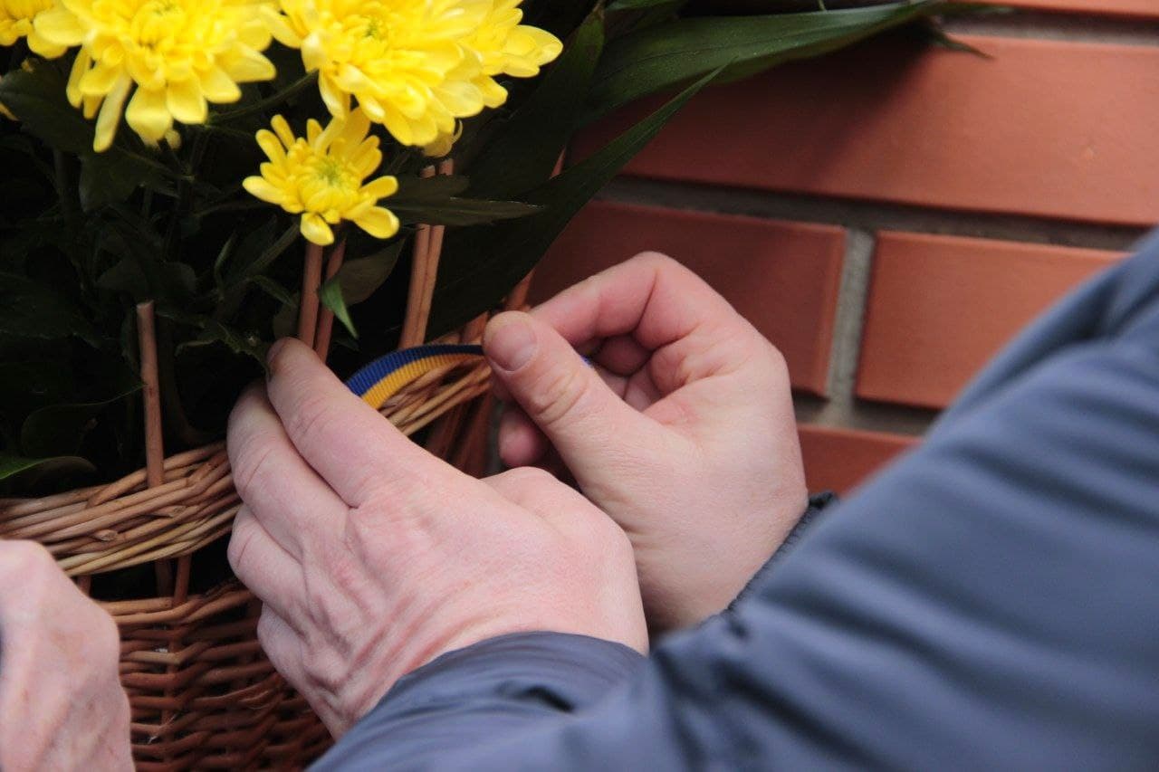 Пiд час заходу керiвництво та громадськiсть пов’язали стрiчки нацiональних кольорiв на кошик з квiтами на честь пам’ятi загиблих. Пiсля чого Єпископ Марк провiв служiння за загиблими.
