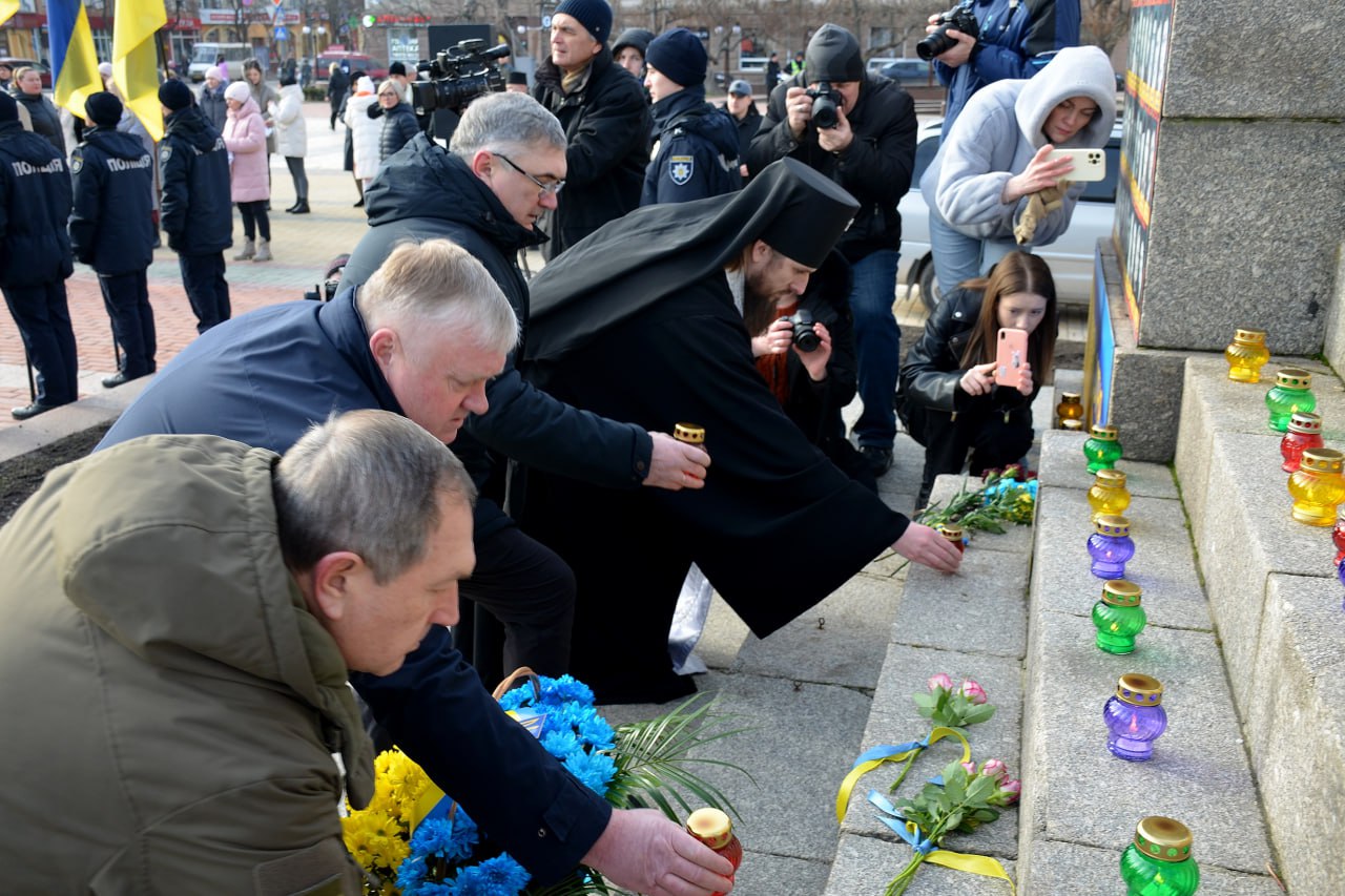 Голова Кіровоградської обласної ради Юрій Дрозд, начальник обласної військової адміністрації Андрій Райкович, керівники правоохоронних структур, військових формувань, громадськість міста вшанували пам’ять Героїв Небесної Сотні та учасників Революції Гідності.