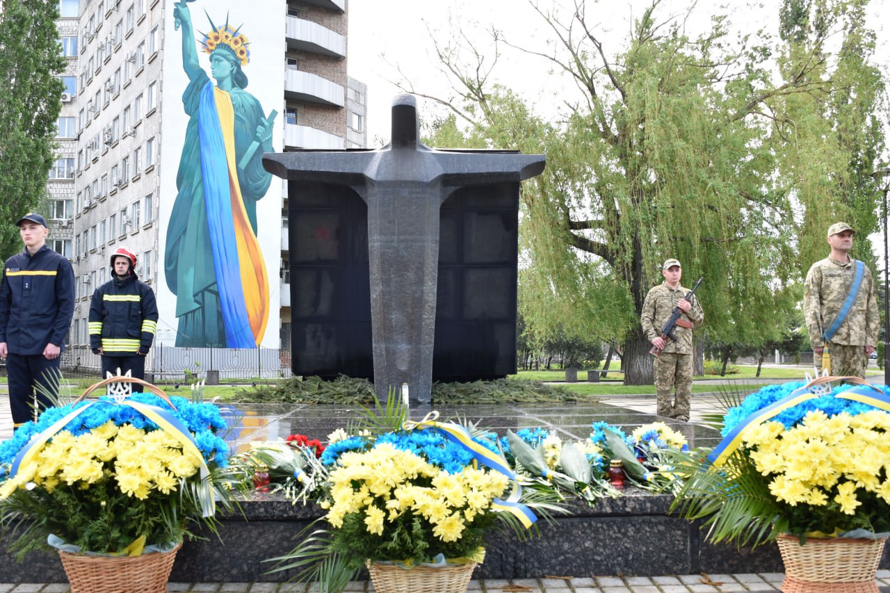 Після загальноукраїнської хвилини мовчання в пам’ять про співвітчизників, що загинули внаслідок збройної агресії російської федерації проти України, вдови ліквідаторів наслідків аварії на Чорнобильській атомній електростанції, ліквідатори наслідків аварії, перший заступник голови Кіровоградської обласної ради Юрій Семенюк, заступник начальника ОВА Сергій Шеремет, заступник міського голови Кропивницького Сергій Колодяжний, представники обласних управлінь ДСНС та Національної поліції України, військовослужбовці та громадські діячі поклали квіти до пам’ятника «Жертвам Чорнобиля», ушанувавши ліквідаторів, пожежників, військовослужбовців, будівельників, вчених, медиків – усіх, хто ціною свого здоров’я зупинили ядерну стихію Чорнобиля.