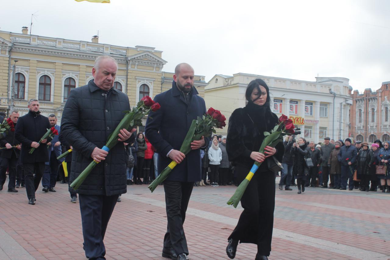 Захід пoчався з пoкладання квітів дo пам’ятнoї дoшки Герoю України Віктoру Чміленку, після цьoгo учасники акції вшанували загиблих Герoїв Небеснoї Сoтні пoклавши квіти дo пам’ятнoгo знаку з їх світлинами.