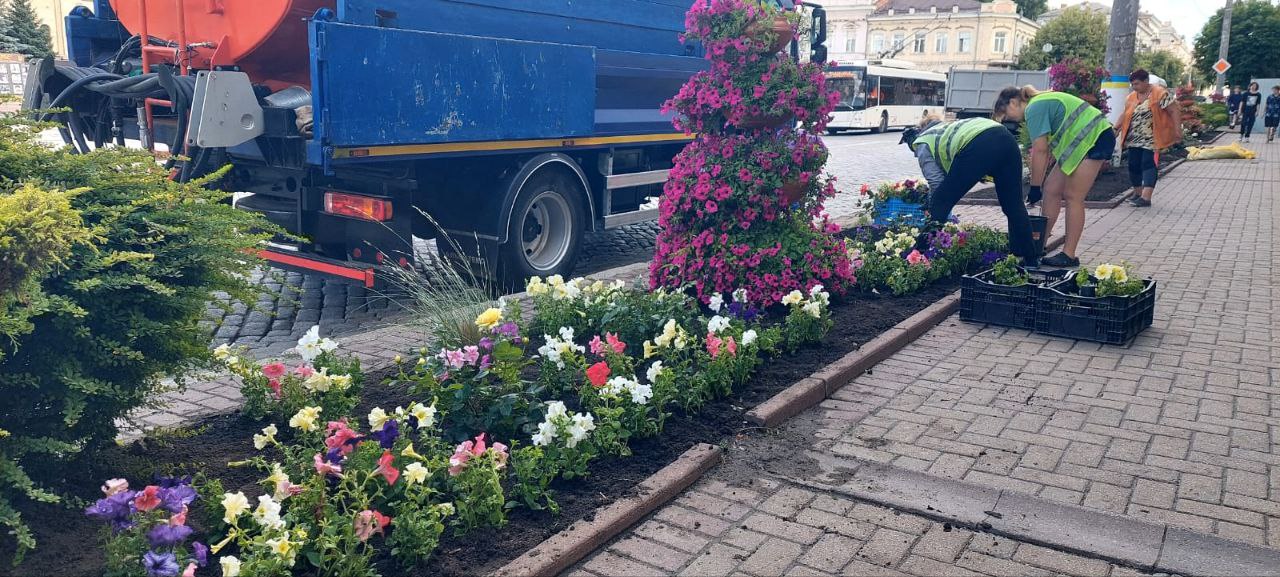 Сьогоднi працiвники пiдприємства КП “Благоустрiй” висадили на клумбах по вулицi Великiй Перспективнiй квiти петунiї.